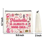 Nashville Travel Gifts Makeup Bag Nashville Is Always a Good Idea Cosmetic Bag Zipper Makeup Pouch Product Details Product Dimensions: 9.4 x 7 x 1.8 inches Item Weight: 1.41 ounces Department: Women Manufacturer: LGLZSHP Country of Origin: China Item model number: LGLZSHP0307 Interesting Gift Idea: This cosmetic bag is not only beautiful but also practical. Interesting theme text and patterns show your taste. Good quality, not easy to fade or scratch. Suitable as a surprise gift for your friends, besties, sisters, work besties, etc. Suitable Size: It is about 9.8 inches x 6.7 inches. It is a suitable size and easy to carry. It can easily store small items such as lipstick, makeup brushes, mascara, lipstick, keys, change, etc. You can put it into a handbag, backpack, travel case or suitcase. It is suitable for daily outings or travel. Waterproof Material: Made of waterproof polyester material with good texture. The metal zipper is smooth and easy to open or close. Design: This cosmetic bag is double-sided printed. The printing effect is good, the pattern is nice and the colors are bright. It is a good and thoughtful gift choice. Surprise Gift: This cute cosmetic bag is a great gift. Suitable for birthdays, graduations, Thanksgiving, Christmas, New Year and other important moments, as a unique thought, to give to someone who is very important to you. This cosmetic bag is not only beautiful but also practical.