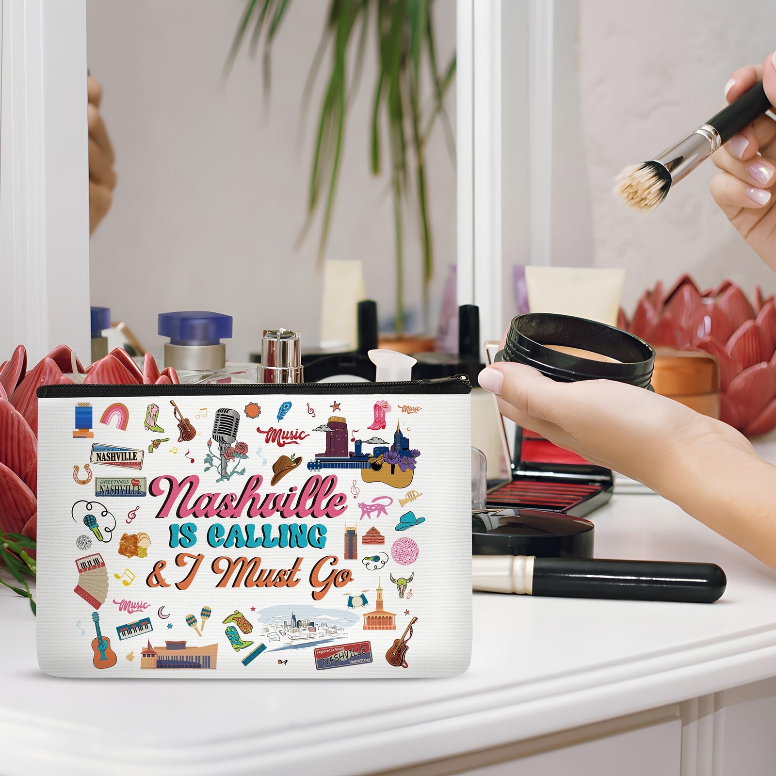 Nashville Travel Gift Makeup Bag for Nashville Lover Gifts Cosmetic bag Country Music Themed Gifts for Traveller Women Friends Sister Funny Zipper Pouch Product Details Color: nashville Brand: SEAOYOZO MPN: Does not apply UPC: Does not apply EAN: Does not apply Product Dimensions: 9.8 x 7.1 x 0.6 inches Item Weight: 1.41 ounces Department: Unisex Adult Country of Origin: China Travel Essentials: Our themed makeup bags, from "Italy is calling and I must go" to "Nashville is calling and I must go," are delightful surprises for women traveling or celebrating bachelorette parties. Great Gift: Perfect for birthdays, travel, weddings, housewarmings, Halloween, Christmas, New Year's, and sharing with your best friend, mom, sister, aunt, teacher, wife, or family. Large Capacity, Multipurpose: Sized at 9.7 x 7 inches, it holds a variety of items like makeup brushes, lipsticks, phones, toiletries, keys, shaving kits, coins, and more. Functions as a cosmetic travel bag, makeup bag, makeup brush bag, travel bag, storage bag, portable toiletries bag, or wallet. Fashionable Design: Double-sided printing with beautiful patterns and motivational slogans reflects your style. Choose from a variety of inspirational, fun, and cute designs to stand out. High-Quality Materials: Crafted from linen, scratch-resistant and waterproof. Sturdy zippers secure beauty products, ensuring items stay in place and are easily accessible. Our themed makeup bags feature declarations like "Italy is calling and I must go" to "Nashville is calling and I must go," perfect for women on trips or celebrating bachelorette parties.These makeup bags are ideal gifts for birthdays, travel, weddings, new homes, Halloween, Christmas, New Year's, and sharing with loved ones. Sized at 9.7 x 7 inches, makeup bags hold makeup brushes, lipsticks, phones, toiletries, keys, and more, making them versatile for various uses.With double-sided printing showcasing beautiful patterns and motivational slogans, the makeup bags offer a range of stylish options.Crafted from waterproof linen with sturdy zippers, makeup bags ensure secure storage and easy access to your essentials.