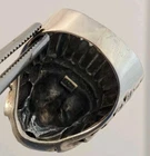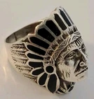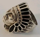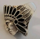 You are purchasing a nice looking vintage sterling silver and black onyx flush inlaid Native American Indian Chief men's ring with a superb 3 dimensional design. It is marked 925 inside the band and it tests sterling and it is in very good preowned condition as seen in the enlarged pictures. It has a nice warm lightly tarnished patina and I have not polished it is a well made attractive ring. It is a size 11.25 and it is 32mm wide on top of the ring and it weights 15 grams. High bidder to pay actual shipping with tracking in the continental U.S. Thanks for looking!!