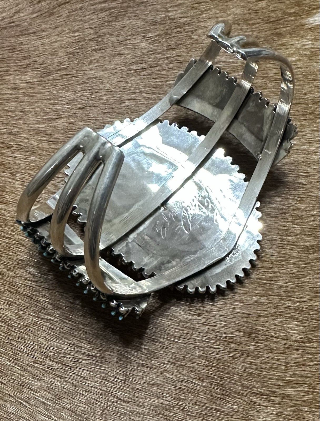 $ 142.04Native American Sterling Silver Zuni Needle Point Turquoise Cuff Bracelet