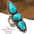 A Wonderful handmade RING by Navajo MASTER Silversmith, DARREN LIVINGSTON. This Ring features NATURAL Blue/Green Spiderweb Sonoran Gold Turquoise stones with near text book amber matrix. Set into a decadent Hand Stamped sterling silver ring. Signed. A Heavenly piece for your Native American jewelry Collection! Specifics & Measurements- Ring Measures- 2 3/8 inches tall ! Size- 10 Sterling Silver Weighs- 27 Grams Stone- Natural SONORAN GOLD Spiderweb Turquoise Signed- by Navajo Silversmith, DARREN LIVINGSTON Ring- Traditional Revival Marked - $588.00 (But on SALE Now) SIZING- Your Local Jeweler should be able to size a sterling band, but I am not personally able to do so. Thank you. Native American Turquoise Ring TOTEM Sterling Silver DARREN LIVINGSTON 10 Native American Turquoise Ring TOTEM Sterling Silver DARREN LIVINGSTON 10 Click images to enlarge Description A Wonderful handmade RING by Navajo MASTER Silversmith, DARREN LIVINGSTON. This Ring features NATURAL Blue/Green Spiderweb Sonoran Gold Turquoise stones with near text book amber matrix. Set into a decadent Hand Stamped sterling silver ring. Signed. A Heavenly piece for your Native American jewelry Collection! Specifics & Measurements- Ring Measures- 2 3/8 inches tall ! Size- 10 Sterling Silver Weighs- 27 Grams Stone- Natural SONORAN GOLD Spiderweb Turquoise Signed- by Navajo Silversmith, DARREN LIVINGSTON Ring- Traditional Revival Marked - $588.00 (But on SALE Now) SIZING- Your Local Jeweler should be able to size a sterling band, but I am not personally able to do so. Thank you. Get images that make Supersized seem small. Showcase your items with Auctiva's Listing Templates! THE simple solution for eBay sellers. Track Page Views With Auctiva's Counter