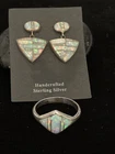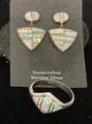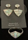 This exquisite Native American jewelry set features handcrafted Navajo designs with stunning fire opal inlay earrings and a matching ring. The sterling silver metal is the highest quality, and the intricate design is a testament to the skill of the artisan. The set includes both earrings and a ring, which makes it an ideal gift for a loved one or a special treat for yourself. The jewelry set is signed and features a 925 sterling silver metal purity. The opal stone is the main attraction, with a beautiful main stone color that will complement any outfit. This jewelry set is a true statement piece that will make you stand out from the crowd.