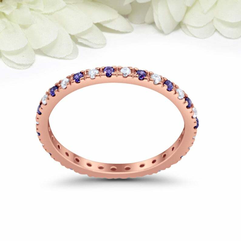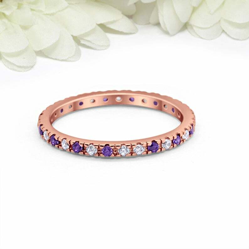 Natural Amethyst Diamond Eternity Band Ring in Gold-Plated Silver for a Stunning Statement Piece