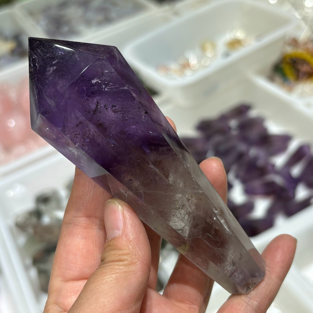 Natural Amethyst Quartz Obelisk Tower Point Wand for Reiki 250g