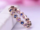Natural Blue Sapphire Amethyst Eternity Band Ring Rose Gold Plated Silver