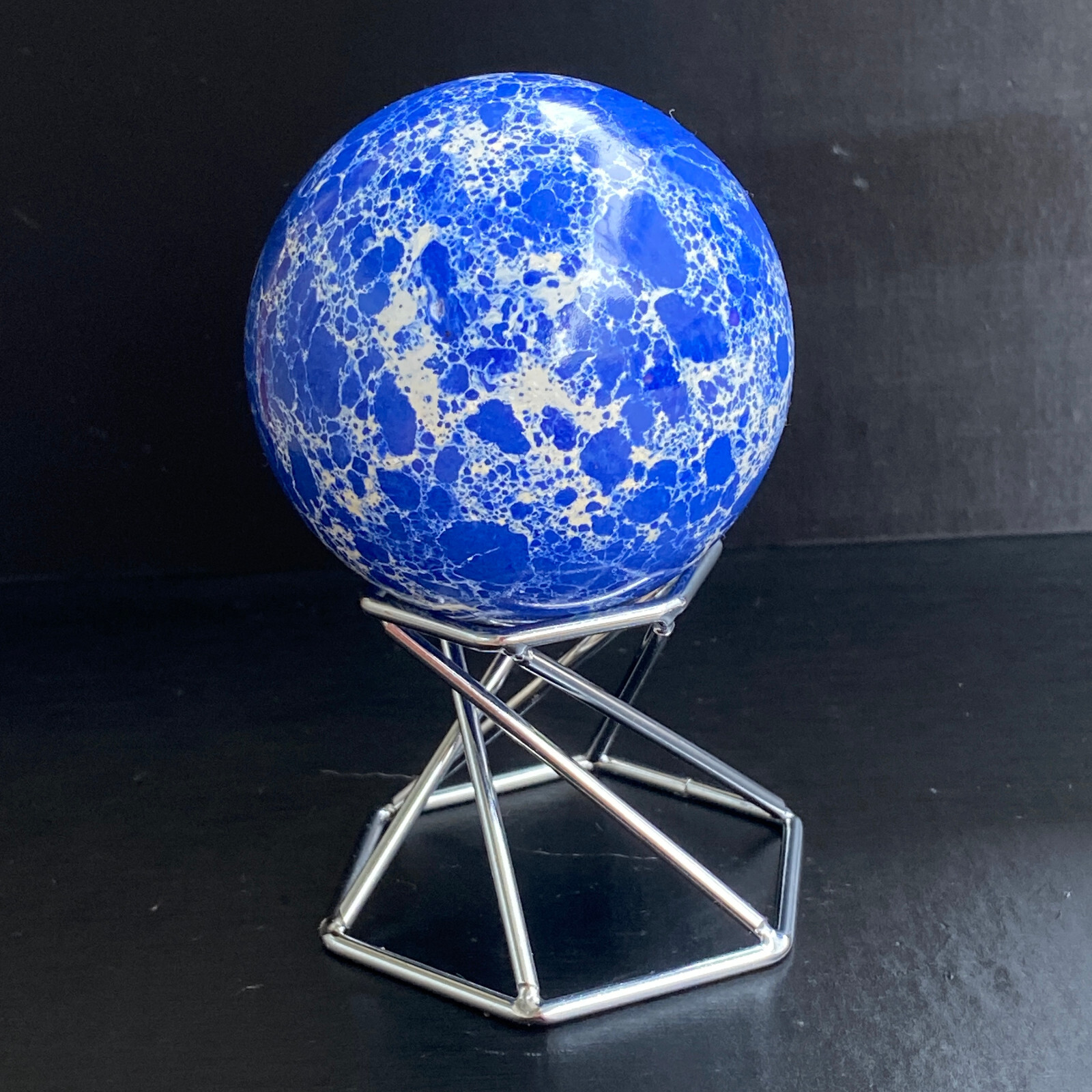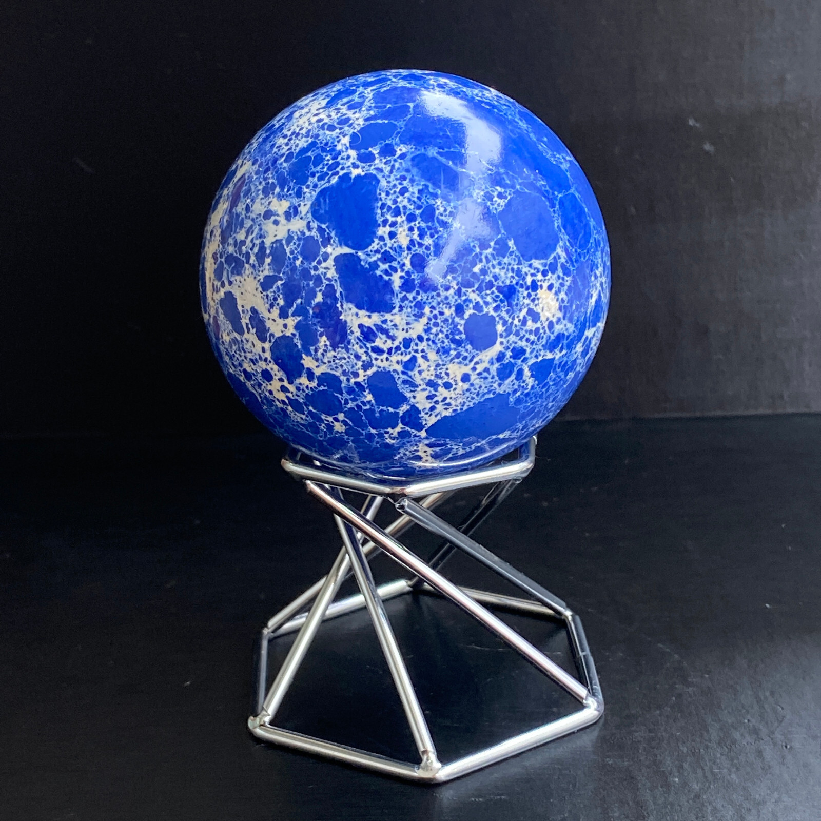 Received exact sphere pictured and described in the listing. An excellent, cleanly shaped stone with a good finish polish. Colors are bold and bright. Even better in hand, than it appeared in its listing photos. Communication with the shop was good. Shipping time from mainland China very acceptable, in light of the distance traveled. Sphere was delivered in good order and perfect condition. Well pleased with my blue/green Turquoise sphere. Good job by this eBay seller.