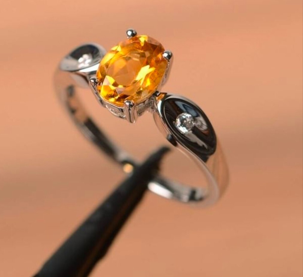 Natural Citrine Engagement Ring in 925 Sterling Silver with Oval Cut Gemstone