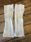 Natural colored knit leg warmers/boot toppers with adjustable top tie.