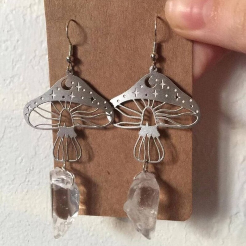 Natural Irregular Crystal Drop Earrings Simple Mushroom Pendant Earring Jewelry Features: The natural stone earrings have a unique personality and stylish designs to make you look more attractive. Universal size for most women and girls with pierced ears! Fashion earrings are easy to wear, light and comfortable to wear. Can be matchs with a variety of clothes, suitable for of different occasions. A for women, girls, daughters, girlfriends, wives, friend! Specifications: Alloy Size: As Shown in the Picture Package Includes: 1 Pair Earrings note: Please allow 1-2cm errors due to manual measurement, make sure that you do not mind before you order. Due to the difference between different monitors, the picture may not reflect the actual color of the item.