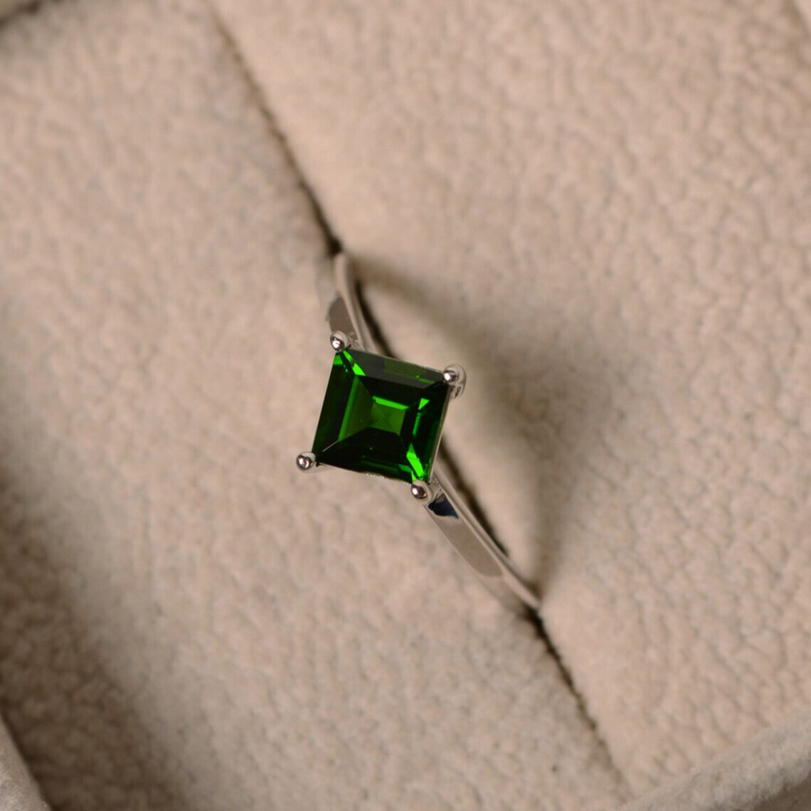This is a handcrafted 925 Sterling Silver ring featuring Natural Diopside gemstone, suitable for both men and women in sizes 4-12 US. The ring is designed by the brand Pink Galaxy and can be personalized with the buyer's desired ring size. This elegant piece is perfect for engagement or as a stylish accessory, adding a touch of celebrity-inspired glamour to any outfit. Made in India, this ring is a unique and eye-catching addition to any jewelry collection.