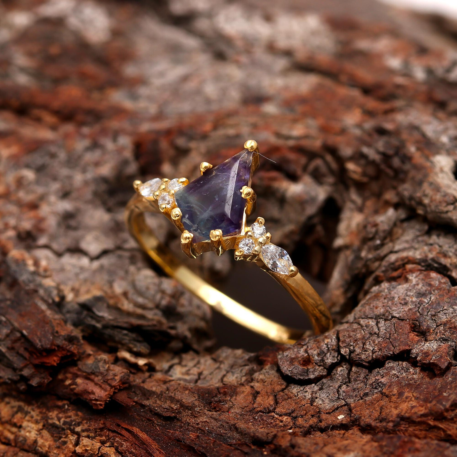 The "Natural Fluorite Gold Plated Ring" is a 925 Sterling Silver ring that can be personalized with sizes ranging from 4 to 12 US. Handmade in India, this ring features a silver pattern and is designed for both men and women. The brand, Pink Galaxy, offers a Celebrity-themed style with the option for personalization, making it a unique and special piece for friends and family.