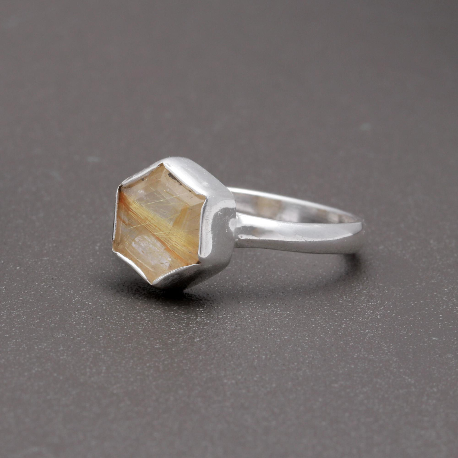 The "Natural Golden Rutile Engagement Ring" is a 925 sterling silver ring available in sizes 4 to 12 US. It is personalized and handcrafted by the brand Pink Galaxy in India. The ring features a unique design with golden rutile, making it suitable for engagement or as a special gift. This ring is a stylish accessory for both men and women, with a celebrity-inspired theme and a handmade touch that adds to its charm and appeal.