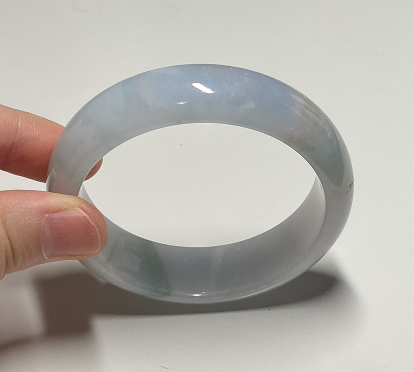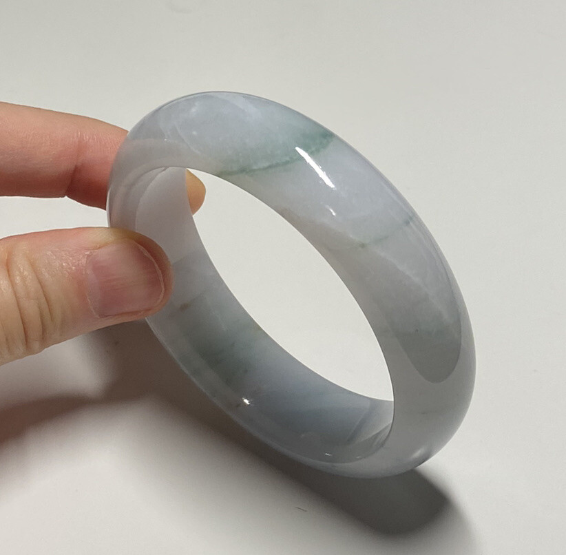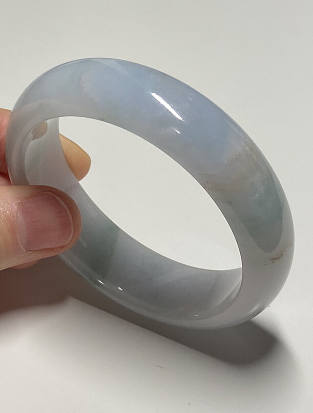 All my jade bangles are 100% natural, untreated and undyed Type-A Burmese jade. This bangle is absolutely uniqu and attractive, it has a light blue patch and a few green and brown veins. Note that there are some natural stone lines which cannot be felt with fingernail. And one tiny rough patch, which can be felt slightly. They have no problem with durability or beauty of the bangle. The price is already reduced though. See pictures carefully. Wearing a jadeite bangle symbolizes to have a peaceful life and keep you from evil spirits. It also helps to enhance longevity luck. This bangle is absolutely deserved to be addition to your collection or as a gift to your beloved one. Please do contact me first for more photos prior to your checkout if needed.
