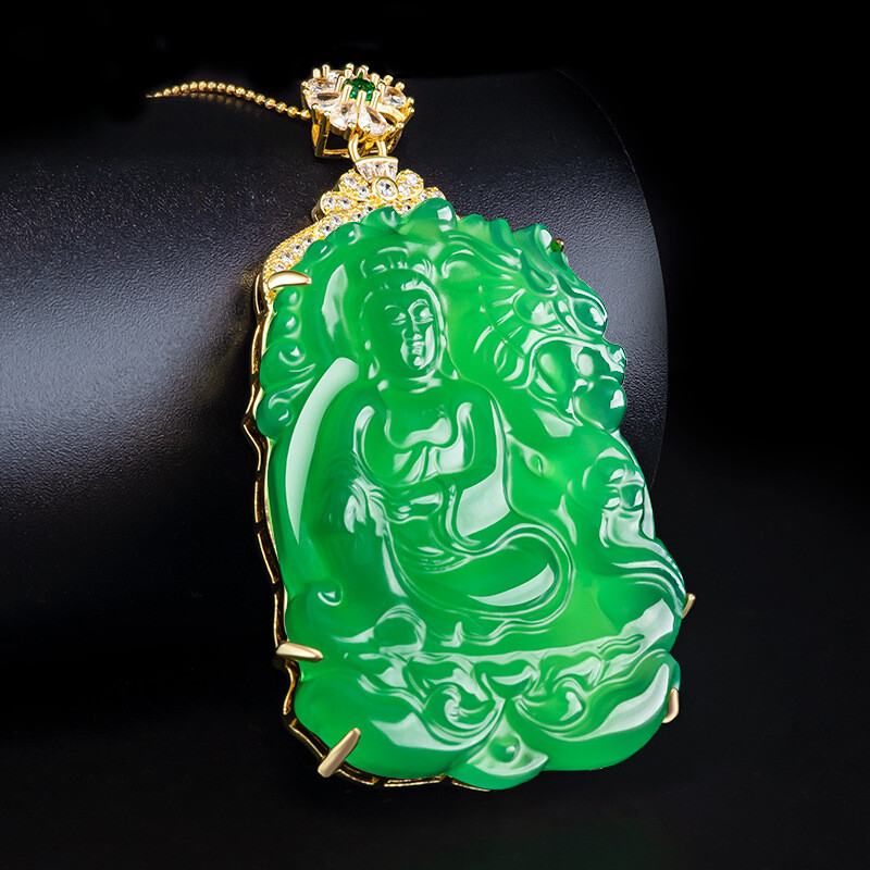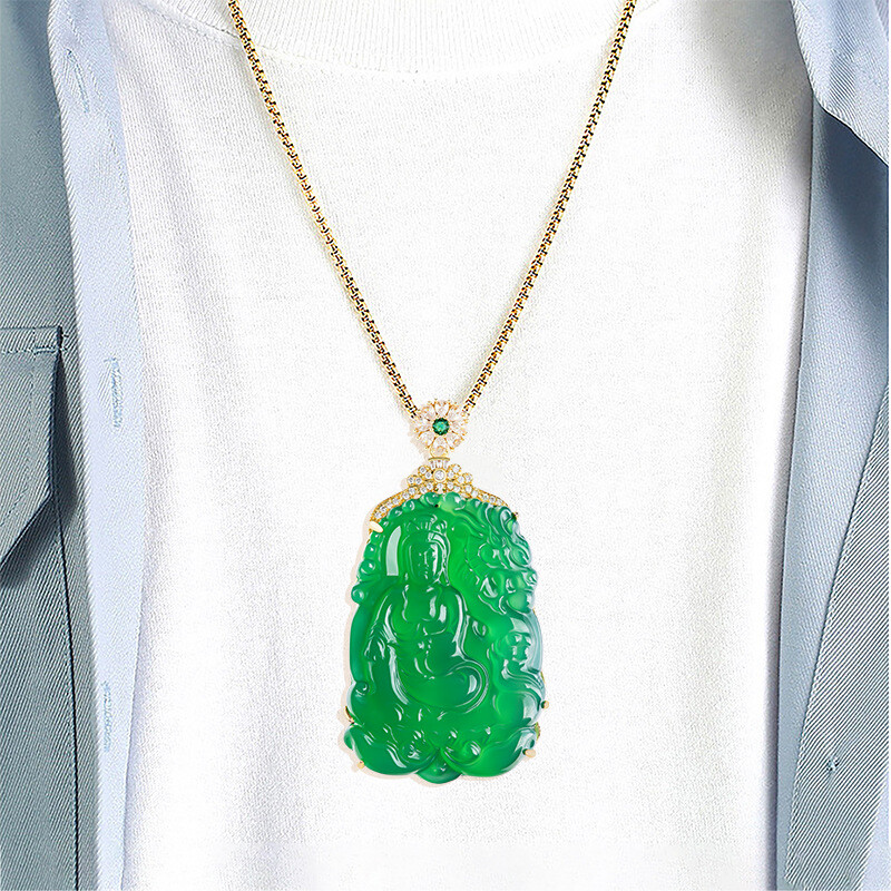 $ 13.19Certified Grade A Natural Green Burma Jadeite GuanYin Pendant Necklace