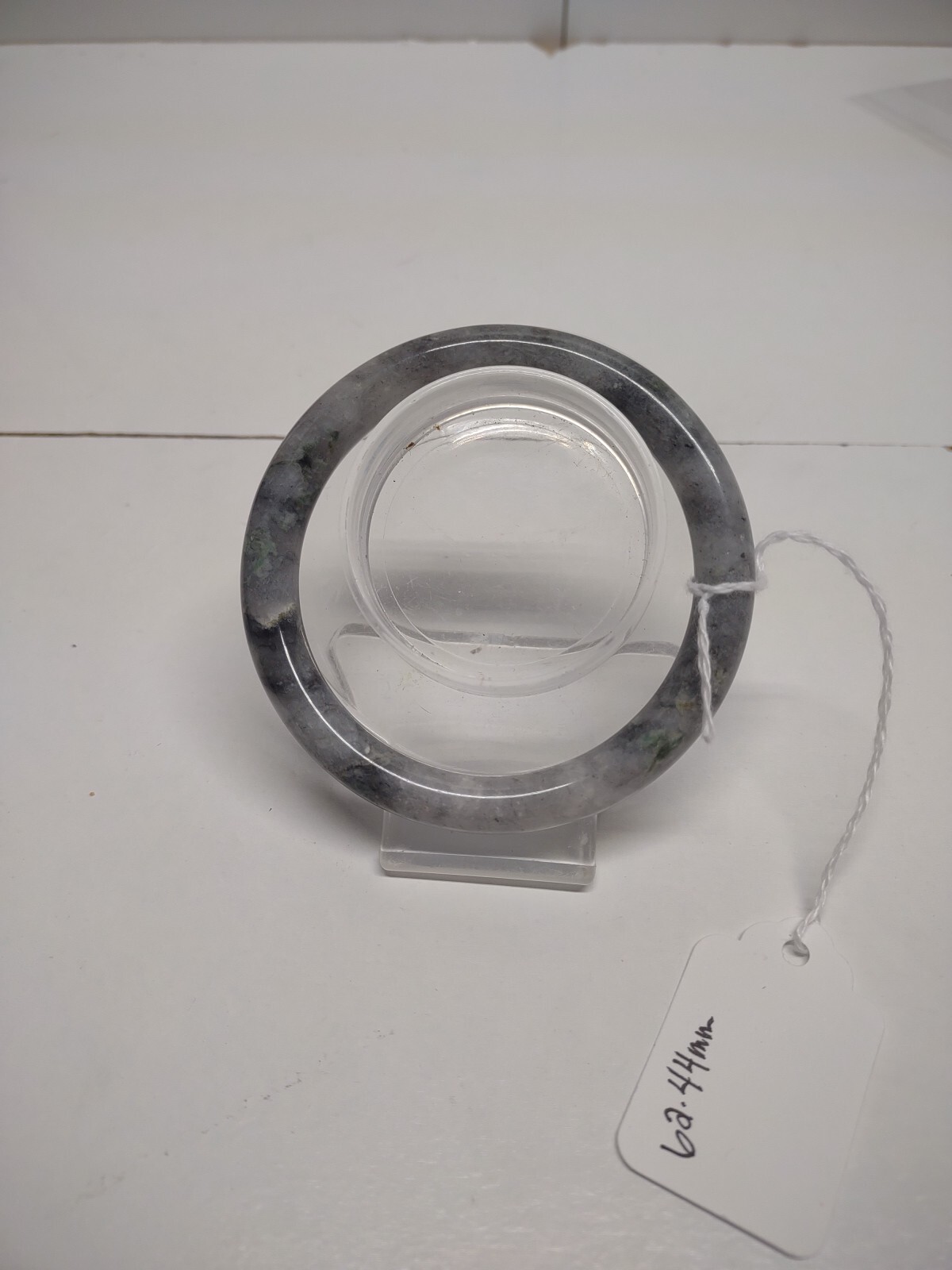 Natural Burmese mountain river bangle Grade A Size 62.4mm All my jadeite bangles are all natural Burmese jadeite from Myanmar, there's no dyes, chemicals or treated what so ever. My jadeite are handmade not machine made. My jadeites might have inclusions from the stones, some might have markings thinking that is a crack lines WHICH THEY ARE NOT..ONLY NATURAL MARKINGS. I guarantee you that all my jadeite bangles are 100% real not fake.. I'm being honest with all my jadeite bangles, they do not come with a certificate of authenticity. Getting the jadeite bangles certified for one of them cost 3x more than the bangle itself. You can take the bangle to any stone places to get it certified. Thank you for understanding.