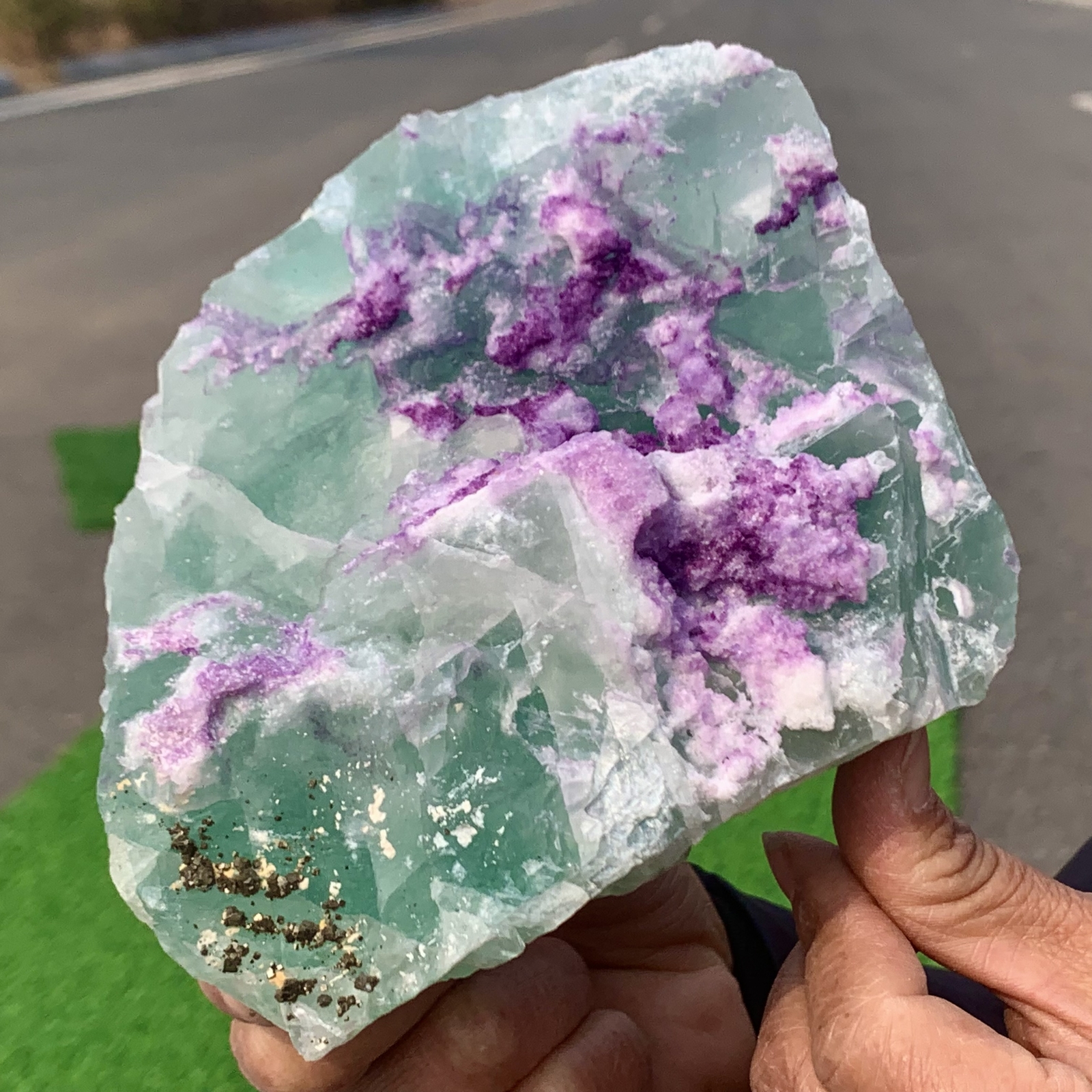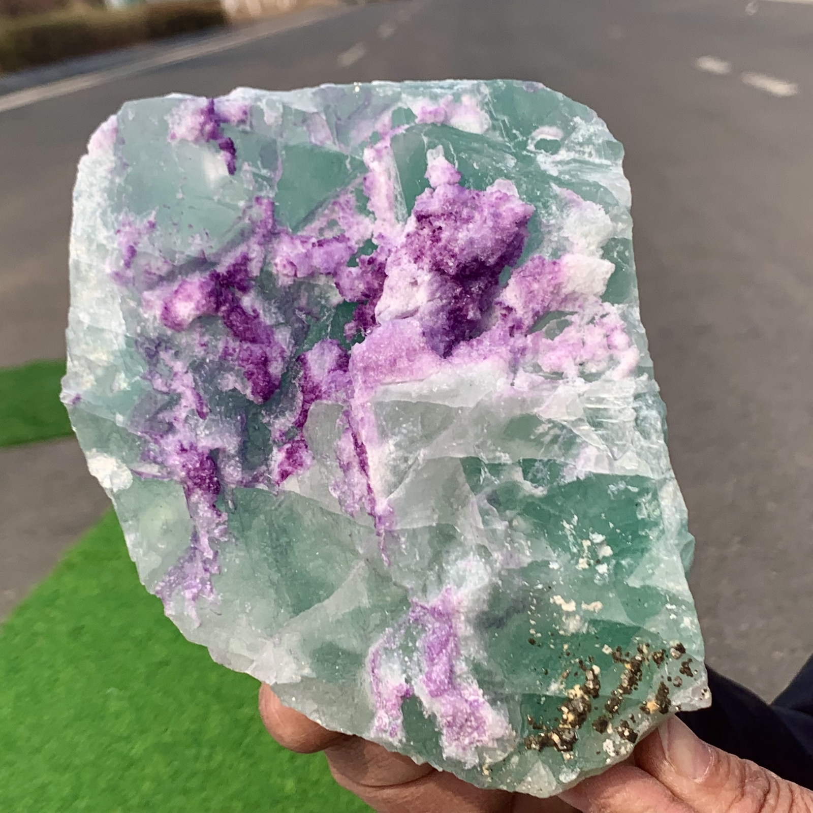 Absolutely stunning cubic fluorite specimen! The rich green and deep purple hues blend beautifully, and the natural sunlight photos show off its vibrant colors perfectly. The size and weight feel substantial—a great display piece for any crystal lover. Fast shipping and excellent packaging. Highly recommended for collectors!