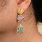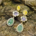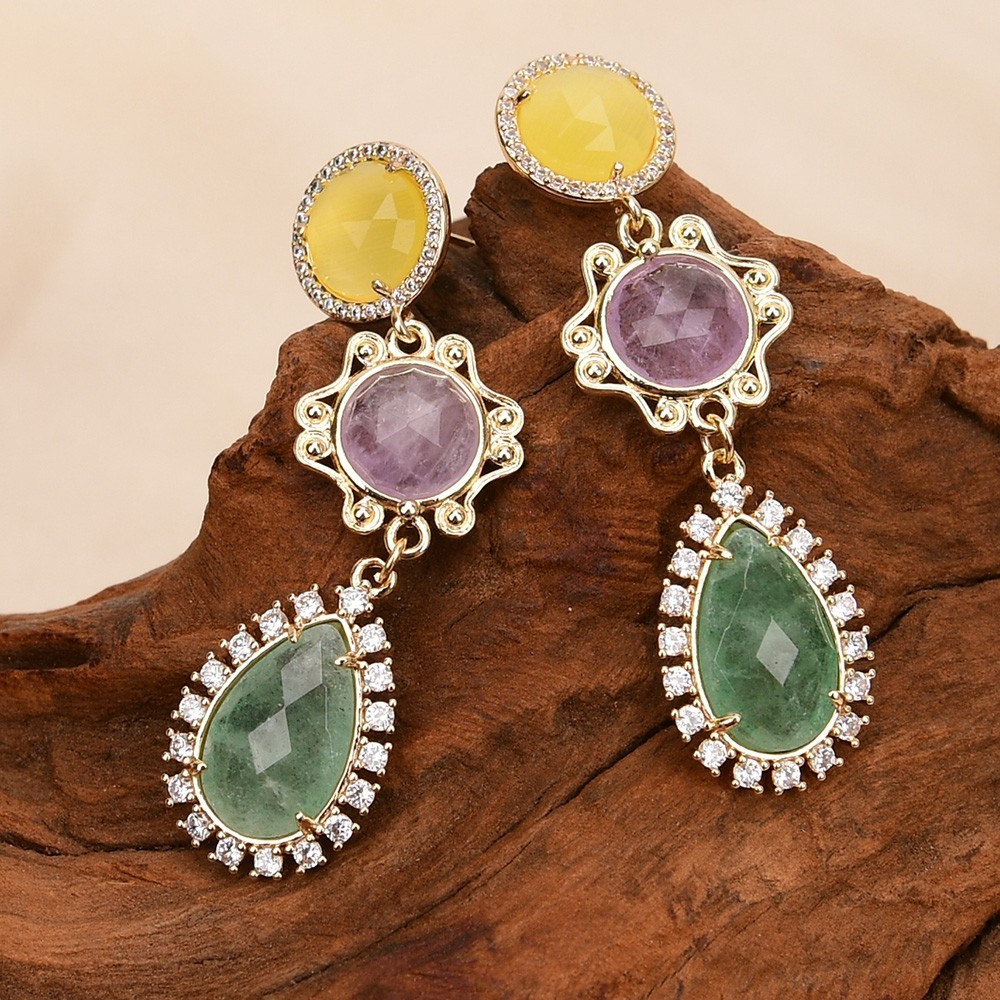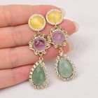 Gems Info: Natural Green Quartz,Puple Amethyst,Good Quality, High Luster! Diameter: 16x21mm(Teardrop Green Quartz),16mm(Amethyst) Length: 2.2"//5.5cm(earrings) Weight: 12.3 Grams Stud: Gold Plated Yellow Cat eye Stud