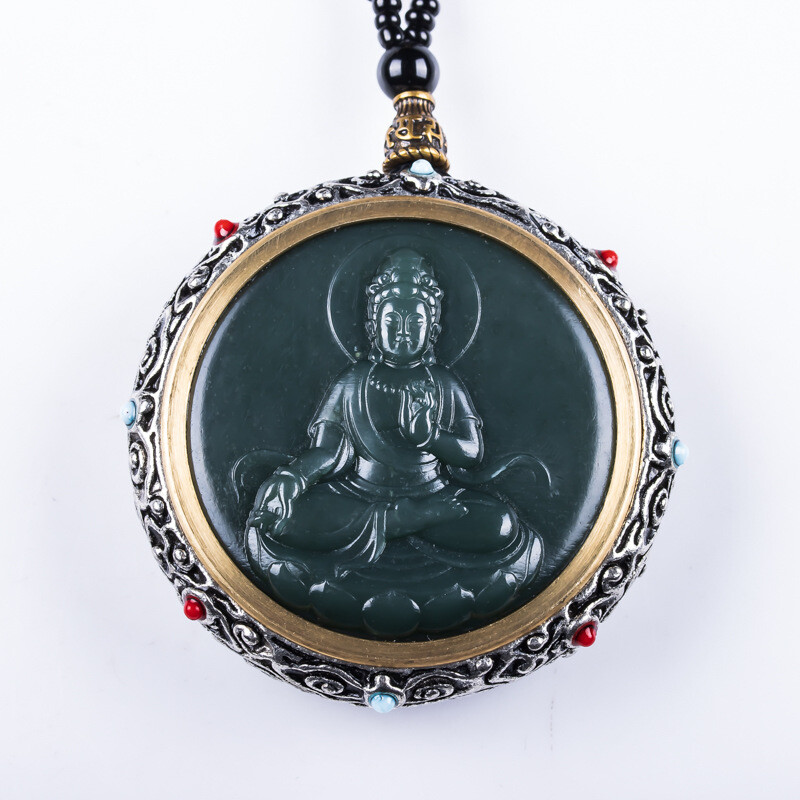 $ 14.77Natural Ice Blue Jadeite Lucky Buckle Bead Pendant Necklace (1PC)