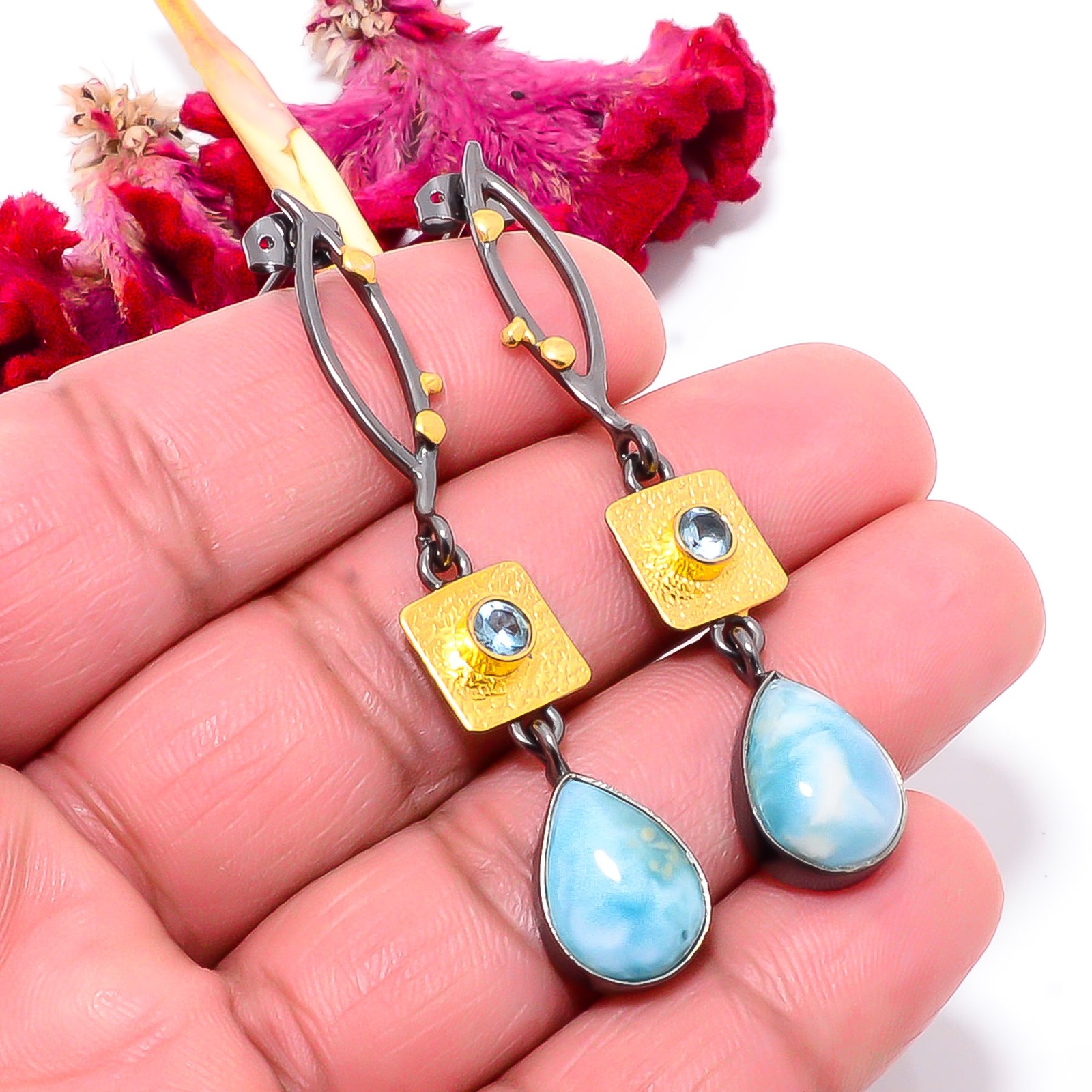 Total-weight-of-Jewelry 6.6 Main Stone Depth As Seen in Picture Main Stone Length As Seen in Picture Main Stone Width As Seen in Picture Seller Warranty Yes Handmade Yes Shape As Seen in Picture Signed Yes Vintage As Seen in Picture Wholesale Yes Occasion Christmas, Birthday, Anniversary, Engagement, Wedding, Valen SKU E_9672_616_21 Unit Quantity 1 Unit Type Unit Type Earring Style Drop/Dangle Main Stone Larimar Main Stone Creation Natural Main Stone Color Same As Picture Main Stone Shape Same As Picture Main Stone Treatment Natural Brand Unbranded Setting Style collet setting Number of Gemstones 4 Item Length 2.34" Item Diameter Unknown Features Unknown Ear Area Lobe Cut Grade Unknown Customized No Country/Region of Manufacture India Country of Origin India Secondary Stone Blue Topaz Material Gemstone Color Same As Picture Theme Beauty Antique Same As Picture Metal Sterling Silver Metal Purity 925 Parts Per 1000 Base Metal Sterling Silver Shipping & Handling - Charge - 1st item-5.90 And Additional item-1.90 Handling Time - 1 Days . Delivery Time - 2 TO 3 DAYS. Shipping Service - USPS First Class Package 2 -3 Days. Returns - 1.We offer a 100% Money Back Guarantee minus shipping for 30 days after receiving the Item / item's. 2..The item must not be altered or damaged in any way shape or form. 3.Upon receiving these items your payment will be refunded. 4.Email us for return instructions before sending merchandise back. 5.Please allow up to 1 business day for all returns to receive credit. 6.Sizing does not affect the return policy. Payment - We accept PayPal for Payment ,should made with in 14 days once buying or winning done , in case of late information expected .