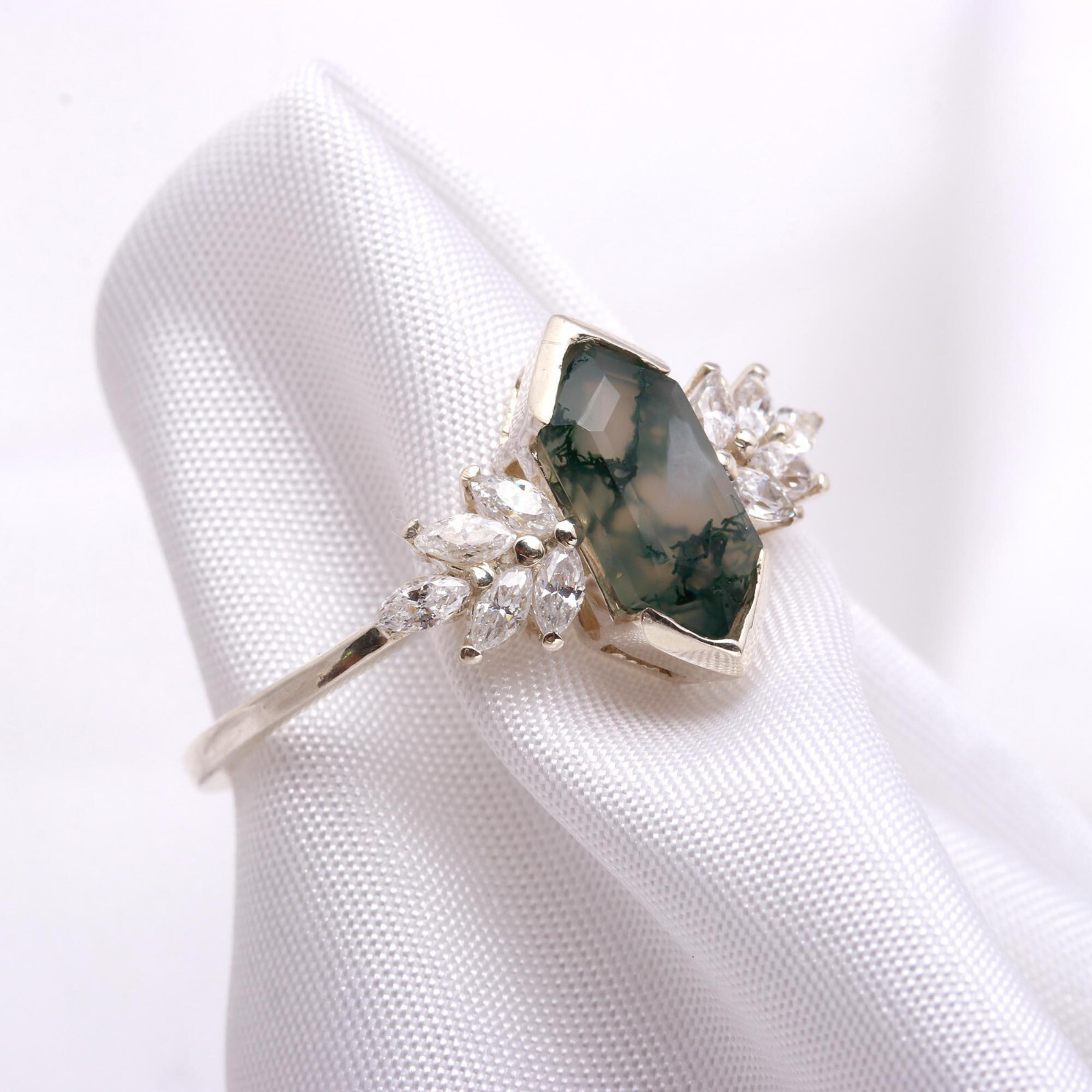 $ 42.77Natural Moss Agate 925 Sterling Silver Engagement Ring Custom Sizes