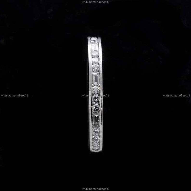 Natural Moissanite Diamond Wedding Band in 14k White Gold Fine Jewelry