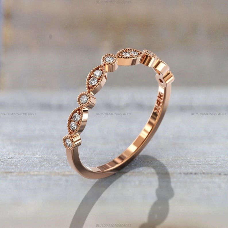 Country/Region of Manufacture: India Secondary Stone: No Stone Main Stone Color: White Base Metal: Gold Metal: Rose Gold Setting Style: As Seen in Picture Gemstone Clarity Grade: Eye Clean Brand: Handmade Seller Warranty: Yes Material: Diamond Main Stone Creation: Natural Personalize: No Ring Size: 4, 4.5, 5, 5.5, 6, 6.5, 7, 7.5, 8, 8.5, 9, 9.5, 10, 10.5, 11, 11. Band Width: 2.05 Occasion: Anniversary, Birthday, Christmas, Engagement, Graduation, Christening, Confirmation/Communion, Mother\'s Day, Valentine\'s Day Shape: Wedding Country of Origin: India Number of Gemstones: As Seen in Picture Signed: Yes Cut Grade: Excellent Features: Engraved, Nickel-Free, Stackable, Handcrafted Theme: Beauty, Bohemian, Ethnic, Healing, Love, Luck, Special Occasion, Halo, Love & Hearts Style: Band Main Stone Shape: Round Metal Purity: 14k Main Stone: Moissanite Color: Pink Handmade: Yes Sizable: Yes Type: Ring