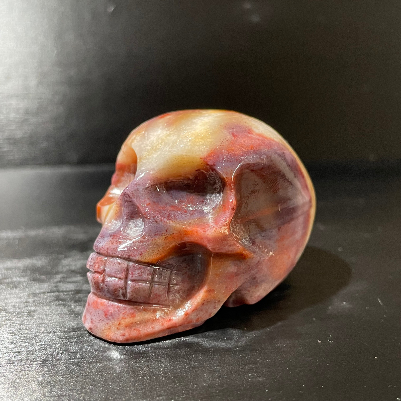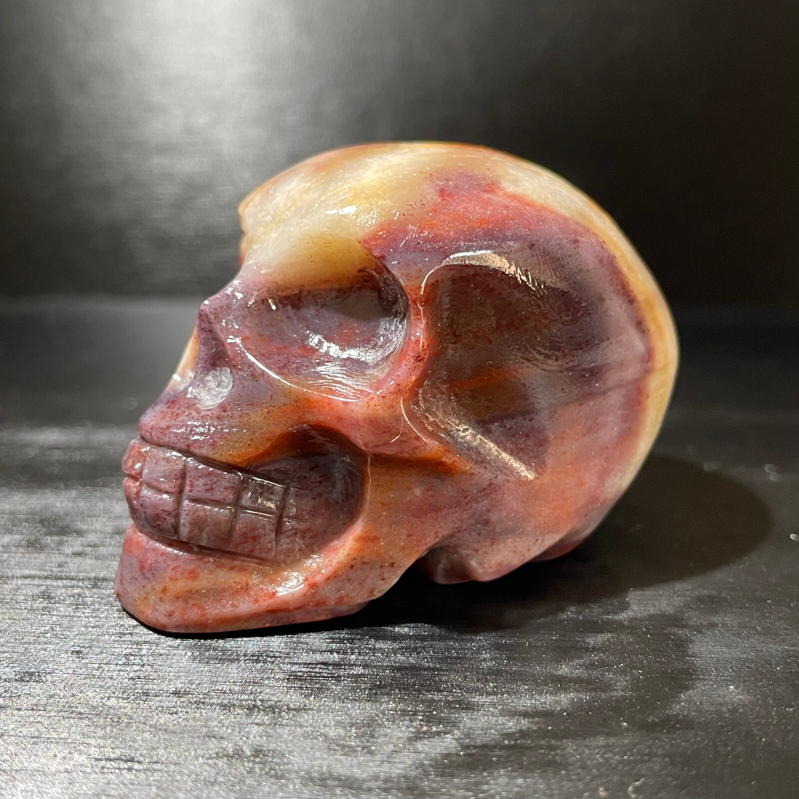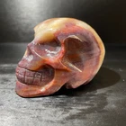 Item as described by size and weight. I did have an issue with the colour of the skull when it arrived against those seen it photos. After communicating with seller I was offered an amazing solution. This seller is among the best the community should hope for. Honest and and caring. Seller recommended for all your mineral collecting needs.