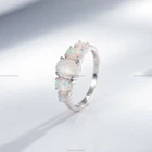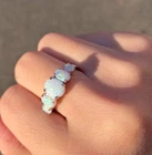 Natural Opalite Birthstone Cluster Anniversary Ring For Girls 14k Yellow Gold
