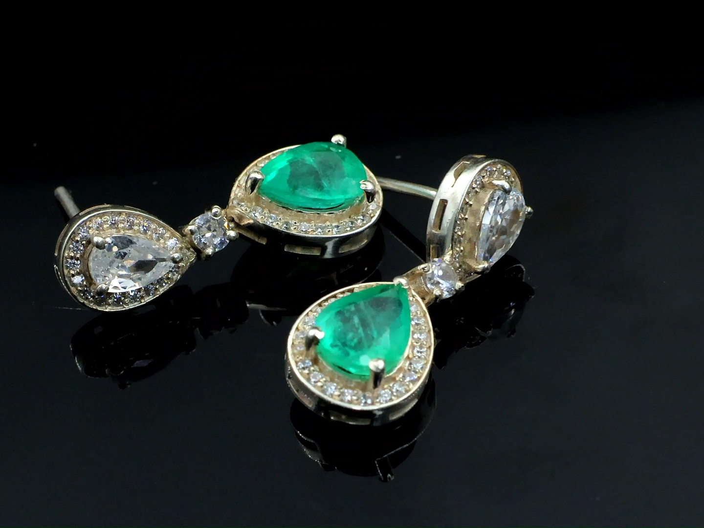 Absolutely stunning! The emerald's vibrant pop of color combined with the moissanite's sparkle makes these earrings a showstopper. Perfect for adding a touch of elegance to any outfit, and they feel so lightweight and comfortable. Love them!