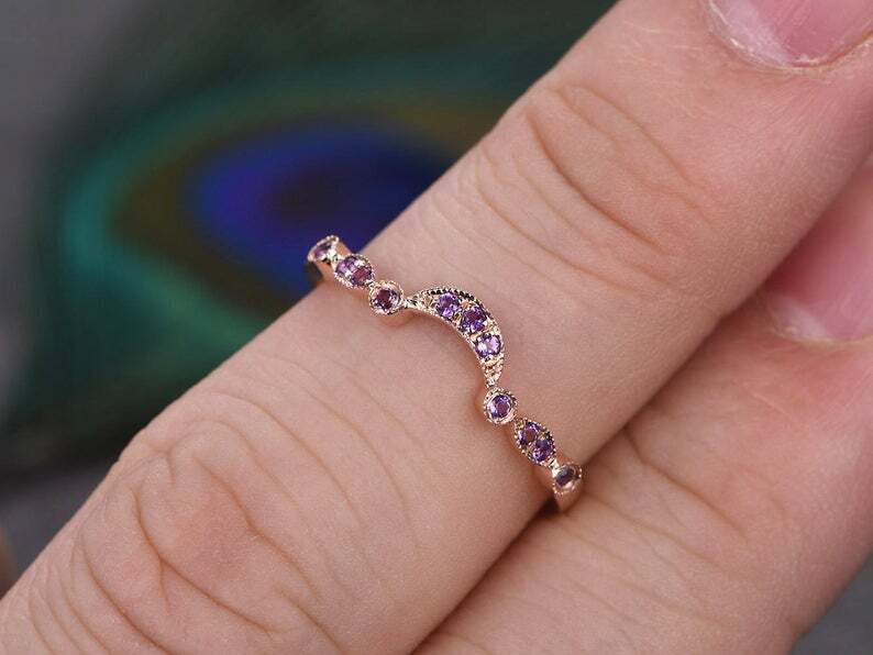 Natural Purple Amethyst Half Eternity Wedding Band Ring in Rose Gold Plated Silver for Women's Jewelry