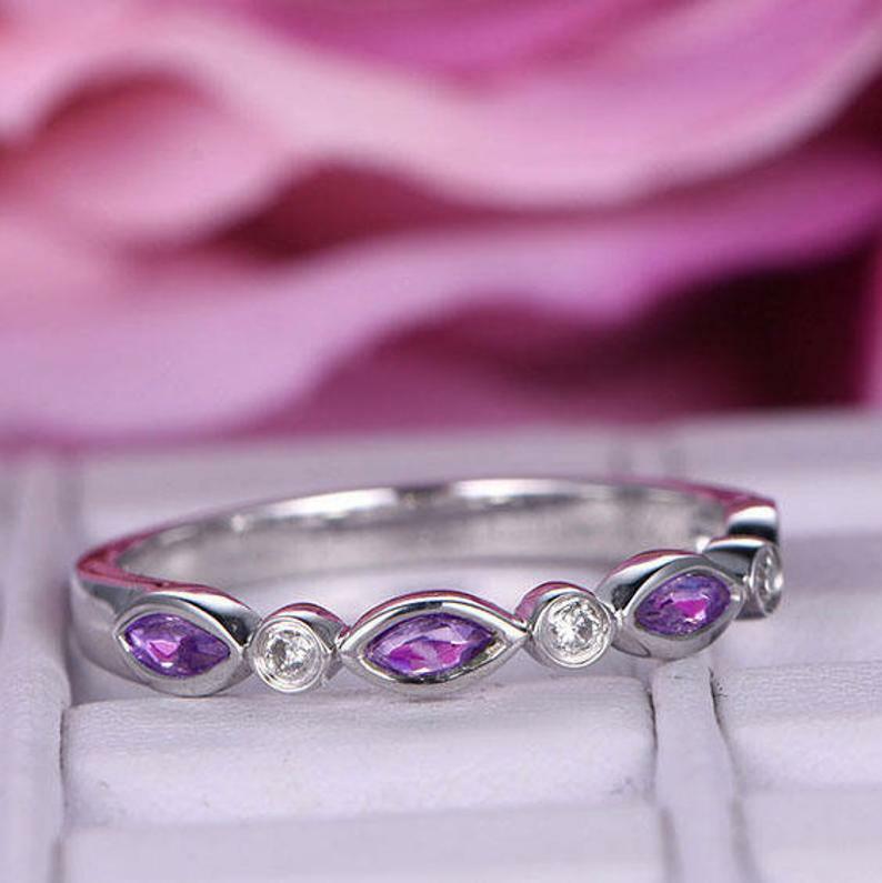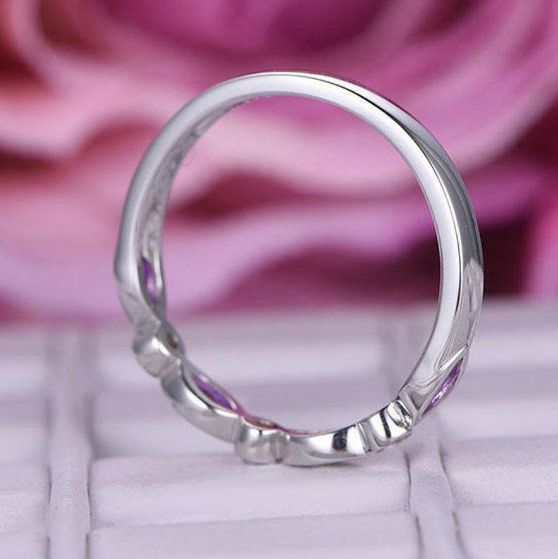 Natural Purple Amethyst Half Eternity Wedding Band in 925 Sterling Silver