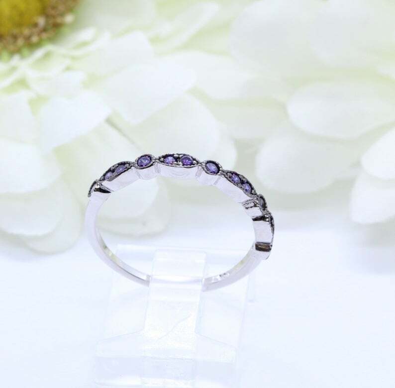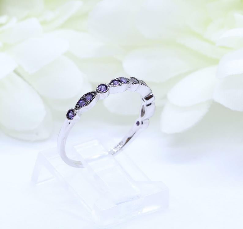 Natural Purple Amethyst Half Eternity Wedding Band in 925 Sterling Silver