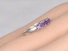 Natural Purple Amethyst Wedding Band Ring Half Eternity 925 Sterling Silver