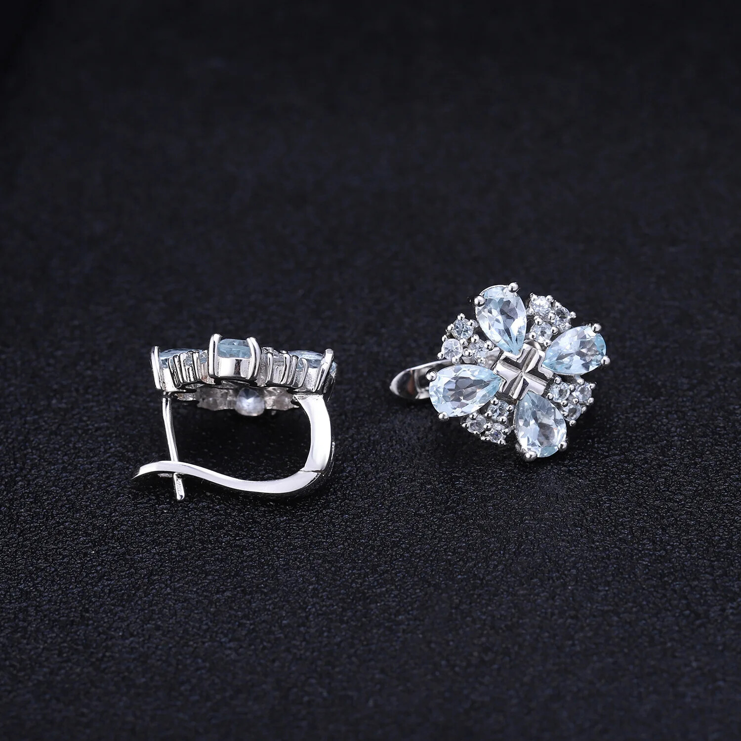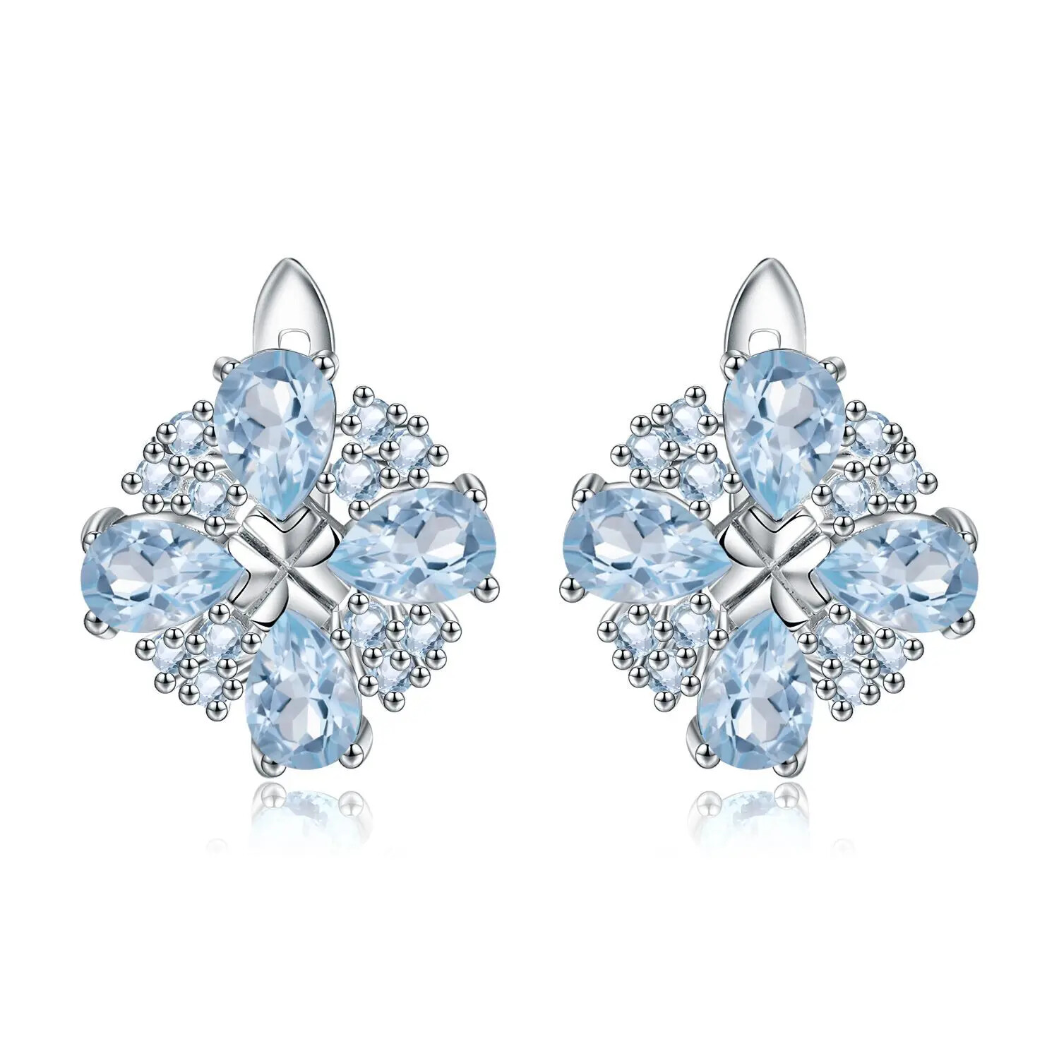 Natural Sky Blue Topaz Flower Earrings - S925 Sterling Silver Jewelry for Women