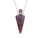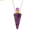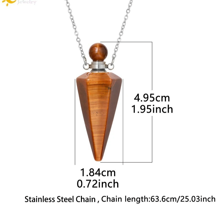 This Natural Stone Perfume Bottle Necklace with a Quartz Crystal Pendant is a unique and elegant piece of jewellery. The pendant shape resembles a bottle and contains a crystal as the main stone, giving it a beautiful and delicate appearance. The necklace is made of stainless steel with a silver colour, making it durable and long-lasting. Perfect for special occasions like engagement, Mother's Day, Christmas, or weddings, this handmade piece is infused with beauty, love, and magic. You can personalise it and wholesale it from the United Kingdom, making it a thoughtful gift for your loved ones.