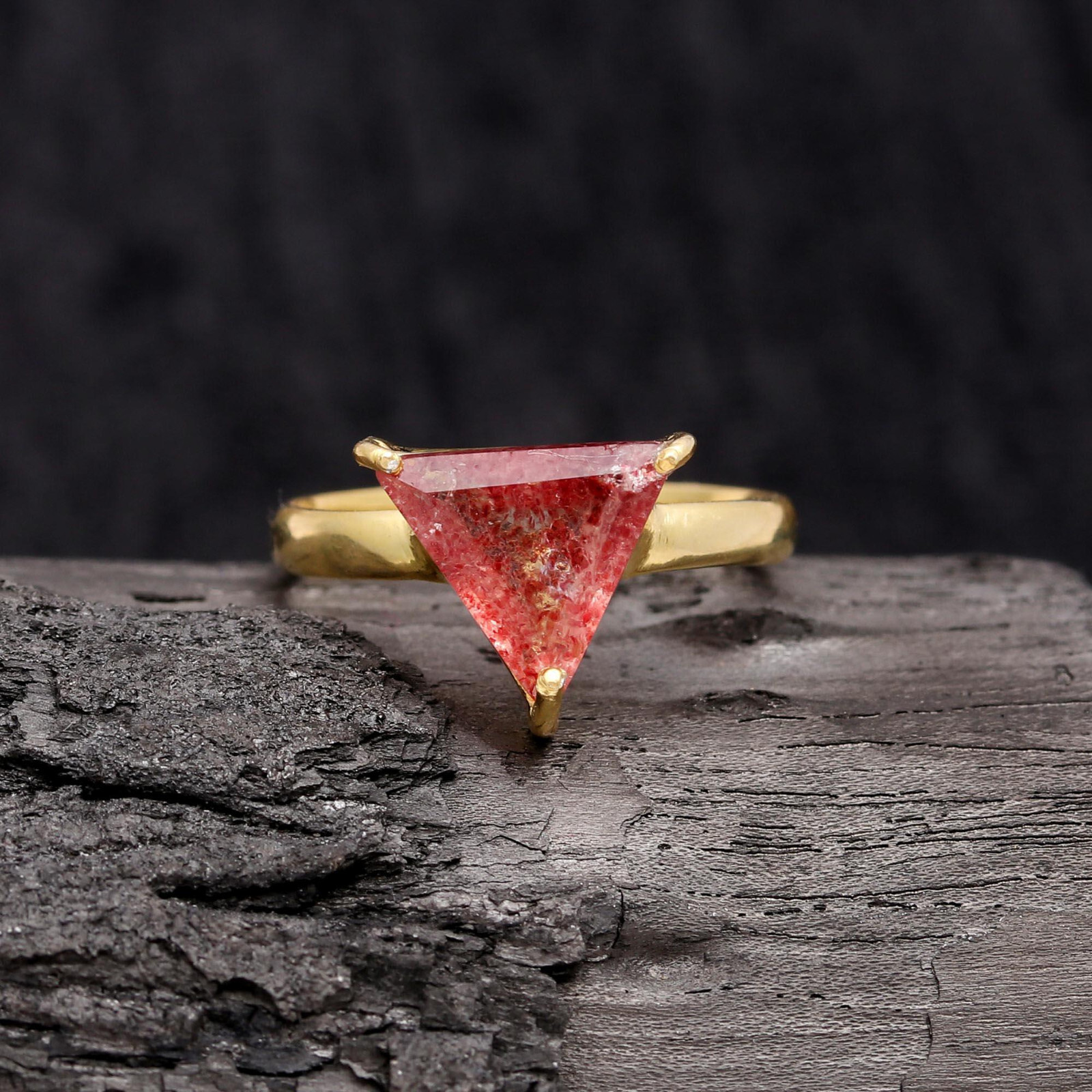 The "Natural Strawberry Quartz Gold Plated Ring" is a handcrafted 925 sterling silver ring designed for both men and women. This elegant ring features a silver pattern with a gold-plated finish, adding a touch of luxury. The ring can be personalized with sizes ranging from 4 to 12 US, making it suitable for a variety of finger sizes. The design is inspired by a celebrity theme, crafted by the brand Pink Galaxy in India, and is perfect for individuals looking for a unique and stylish accessory.