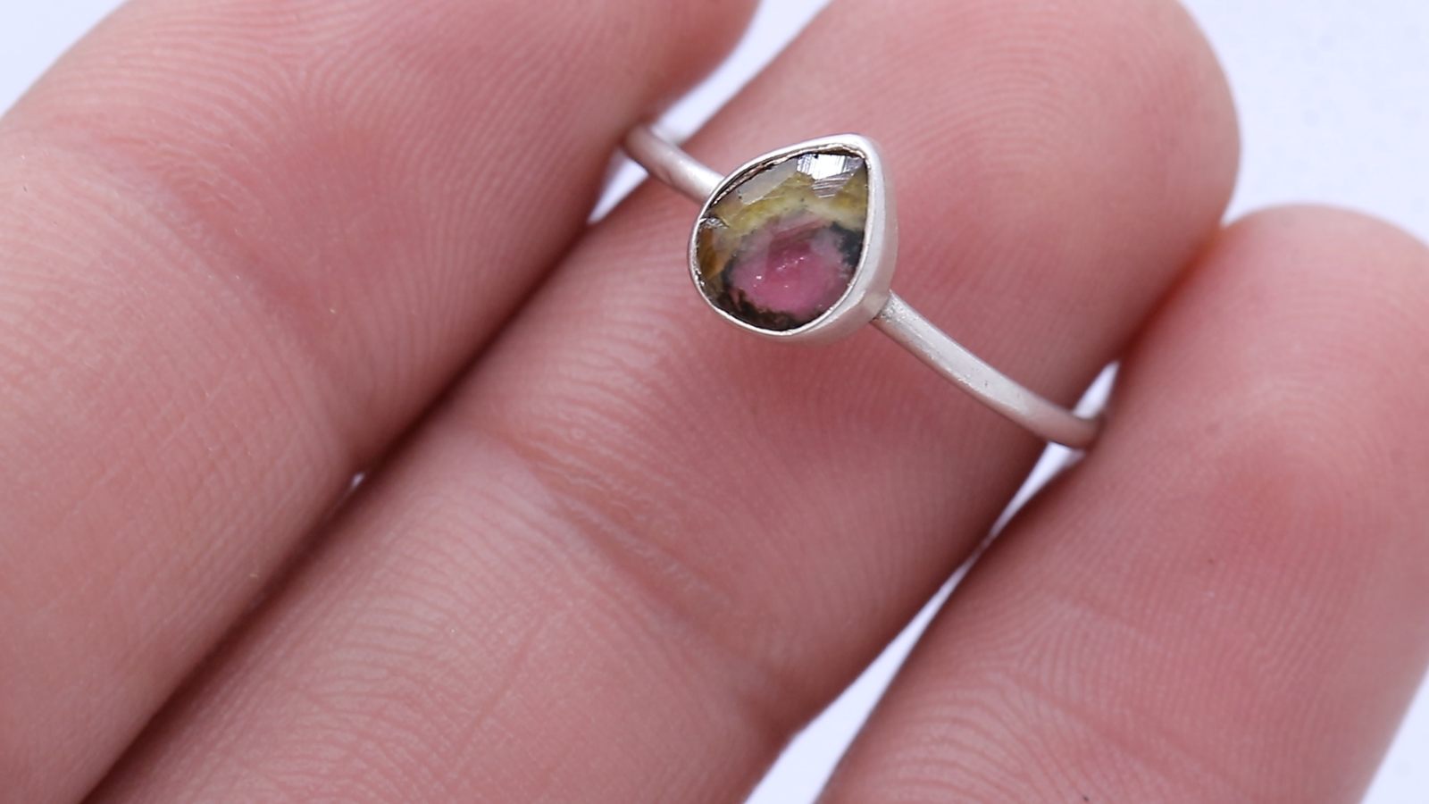 This stunning watermelon tourmaline ring is a dream! The pear-shaped multi-colored stone sparkles beautifully against the sleek sterling silver band. Lightweight yet durable, it’s perfect for everyday wear or special occasions. The craftsmanship is excellent, and the natural stone adds a unique, vibrant touch. Love how elegant and eye-catching it looks—definitely a standout piece! Great for gifting or treating yourself. Highly recommend!