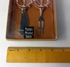 Nautical Hostess with the Mostess Copper toned Anchor Charcuterie Knife and Fork Utensil Set 4.5 inch. See pictures for measurements. PLEASE NOTE: plastic cover has some dents, see pictures. Will combine shipping on multiple orders. Shipped from smoke free environment. Fast shipper!