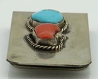$ 105.58Vintage Navajo Coral Inlay Belt Buckle Sterling Stamped G. Charley Western