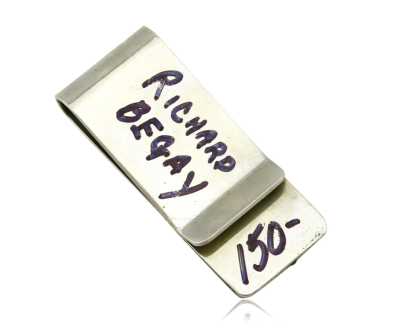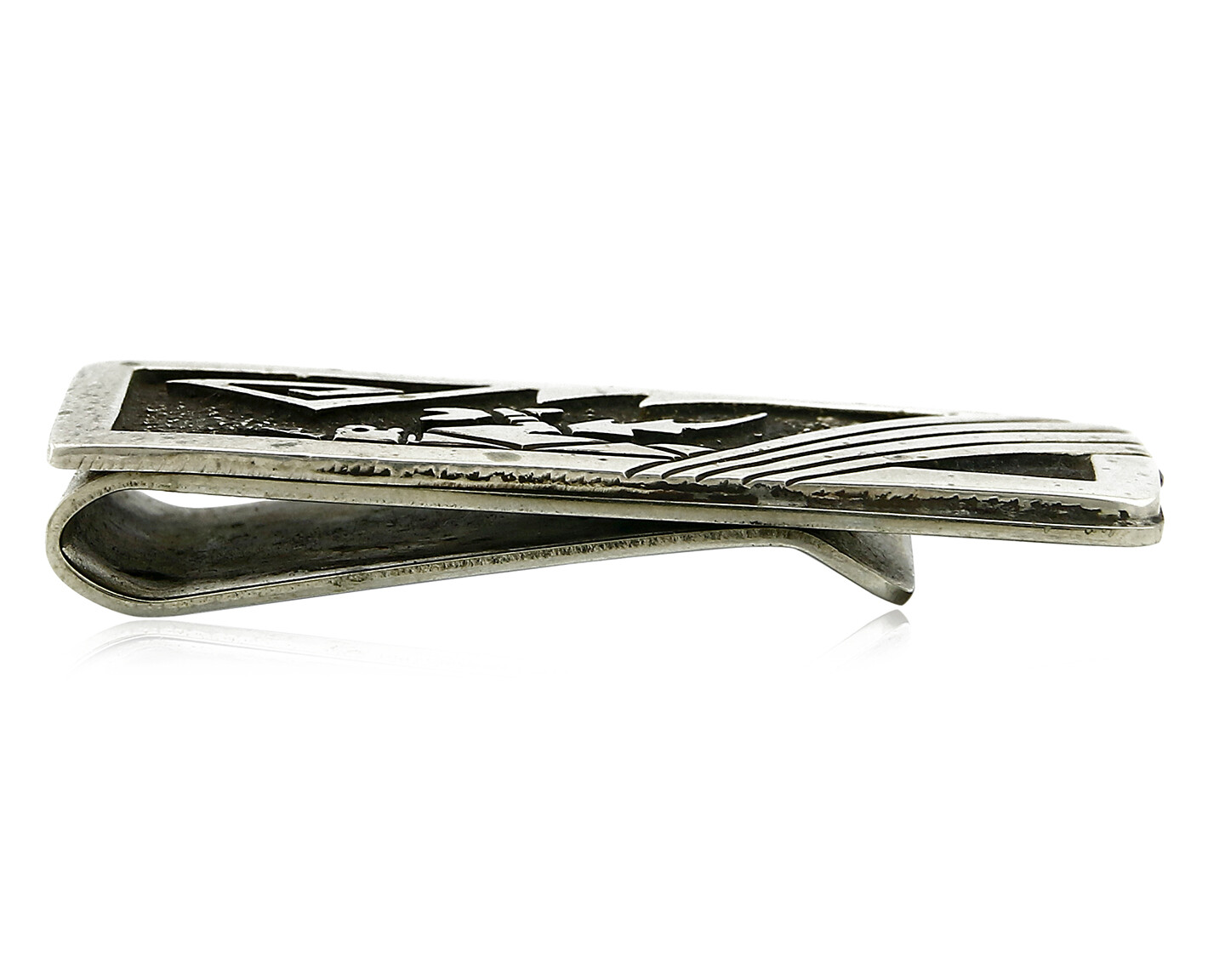Jewelry Type: Money Clip Metal Purity: .925 & .999 Metal: Sterling Silver & Nickle Silver Main Stone: N/A Type of Stone: N/A Secondary Stone: N/A Tribal Affiliation: Navajo Country of Origin: USA Country/Region of Mfr: USA Material: .925 Sterling Silver with Nickle Clip Artisan/Brand: Richard Begay Signed: Signed Gram Weight: 19.2 Length (inches): 1.8 Width (inches): .75 This nice silver money clip will make a great addition to your fine jewelry collection
