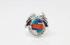 This is a Native America Navajo Sterling Silver Multi-Color Stone Inlay Ring By J.Y. Ring size: 7.50.