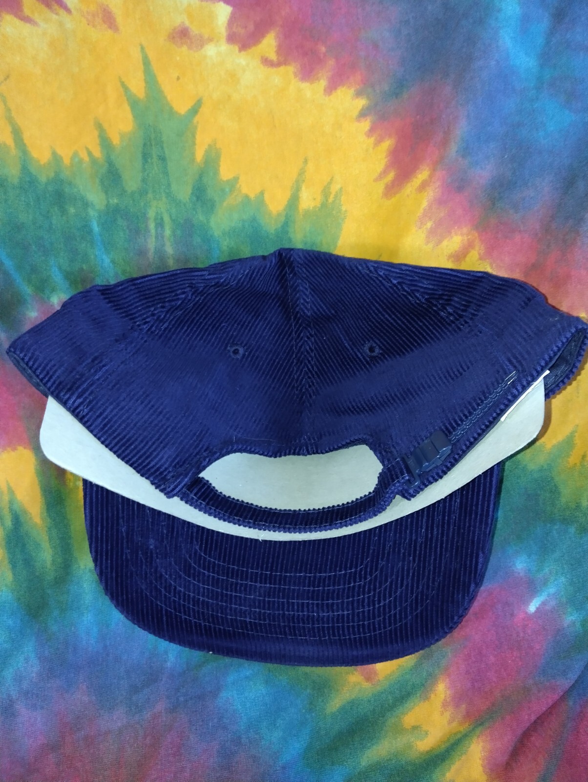 Corduroy hats are back in style... This is a plain navy blue corduroy hat, with braid... Cloth strap adjustment in the back, for the perfect fit... Free shipping on this vintage lid... I ship my hats boxed, USPS Ground Advantage...