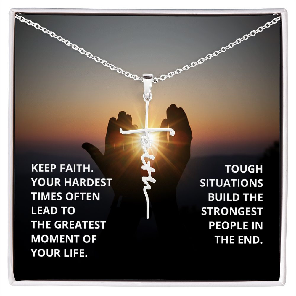 ππ **Perfect Gift for Anyone**ππ What better way to showcase your FAITH than with a stylish, everyday accessory? The Faith Cross Necklace allows a beautiful expression of hope and faith that will instantly elevate your wardrobe. This absolutely dazzling Faith Cross Necklace is white gold dipped and features a perfectly sized pendant, which makes sharing your beliefs undoubtedly easy. So whether it's a life-changing baptism, a worthwhile birthday, or any other monumental celebration, make sure to give a gift that will stay meaningful for years to come. Anyone will absolutely Just Love it! ππ , Guaranteed ππ Each gorgeous Faith Cross Necklace is lovingly packaged in a complimentary soft touch box for easy gifting. To Elevate your Gift, Even More and Give it that Extra Flare & Pizzazz, with the Ultimate WOW Factor π, Go with the Upgraded Mahogany Luxury Box, featuring a brilliant LED spotlight , for a truly impressive and eye-catching display. π β€ Buy Now Before We Sell Out! β€ Limited Time Sale! ===============PRODUCT INFORMATION============= β€ A Gorgeous and Delicate Scripted Faith Cross Necklace β€ 14k White Gold Over Stainless Steel β€ Pendant Dimensions: Approximately 0.5" (16mm) wide / 1.5" (36.2mm) tall β€ 18"-22" adjustable cable chain necklace with lobster clasp attachment You must see it for yourself! π - See It In Action Below! Insert Card Included - (As Shown in Picture) "Keep Faith. Your Hardest Times Often Lead To The Greatest Moment Of Your Life. Tough Situations Build The Strongest People In The End." **If you Need the Insert Card Customized, to Say Something Different, or Want it Personalized in any way?? Just Reach out to us! Please Send Us a Message for your Personalization Requests prior to Checking Out or within 1 hour of Placing Your Order! Otherwise we will Send this One included in the pictures.** Check Out More Fun Jewelry Designs & Gifts β€β€ Click Here! β€ Check out our other Religious Message Card Jewelry Designs in our Shop! β€β€ More Religious Jewelry Designs, Click Here! ===============WHAT YOU RECEIVE============= β A Free Standard Giftbox (as shown) β A Free Custom Designed/Personalized Insert Card (as shown) β Free USA Shipping (for a Limited Time) All Jewelry Orders are Shipped within 2-5 Business Days. Shipping takes approximated 4-7 Business Days. Most USA Orders are Received within 6-10 Business Days. ** Upgraded Mahogany-Style Luxury Gift Box >>>Choose 2nd Option<<< with silky smooth interior, and Built-in LED Light to help accent the Message Card and Product. (Reg $39.99, On Sale Over 40% Off - Ebay Super Sale! - Limited Time Special Offer +<$20 )<< What a Steal! ;) ============== OUR GUARANTEE ================== β€ 100% Satisfaction Guarantee If you Have any Questions or Have a Personalization Request, Please Feel Free to Reach Out to Us Anytime!