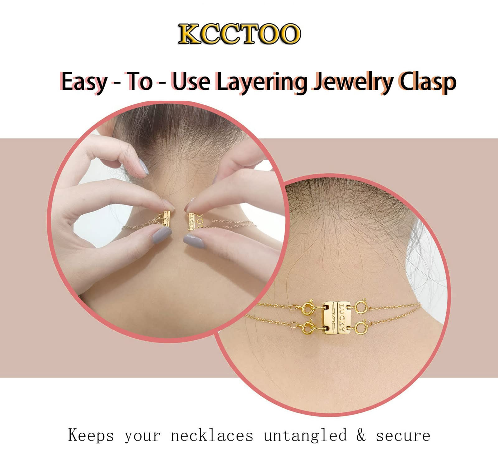 【Perfect Necklace Layering Clasps for Jewelry】:Layered jewelry shouldn’t be complicated. Kcctoo Layered connector will prevent multiple necklaces from getting tangled and make sure you are always in your best. 【Easily Use & More Secure】:Just attach your favorite pieces of jewelry to our necklace layering clasp and stick the two magnetic sides together then you're done! Quite easy! Our magnetic clasps is designed to hold up to 4 pounds in order to guarantee your jewelry safety. 【Safe Materials】:Made of strong magnet, silver and gold plated stainless steel. It is light and safe without adding any lead and nickel, which can serve you (be used) for a long time. 【DIY Design Your own Lovely Jewelry】: These necklace separators are very popular in TV programs like Today Show. It might be helpful in your jewelry box as you can easily change your outlook to show your different beauty and charm. What's more, these small tools are very friendly to patients with arthritis or limited nail trimming as you don't need to unbutton lobster clasps by finger. 【Best Presents for Her】:Layer Clasps with high quality are the best choice if you want to buy a gift in Mother's Day, Christmas, Valentine's Day, Wedding, New Year and other holidays. Perfect wear for brides, bridesmaids, birthday, parties and so on, and you can even wear them in a daily basis.