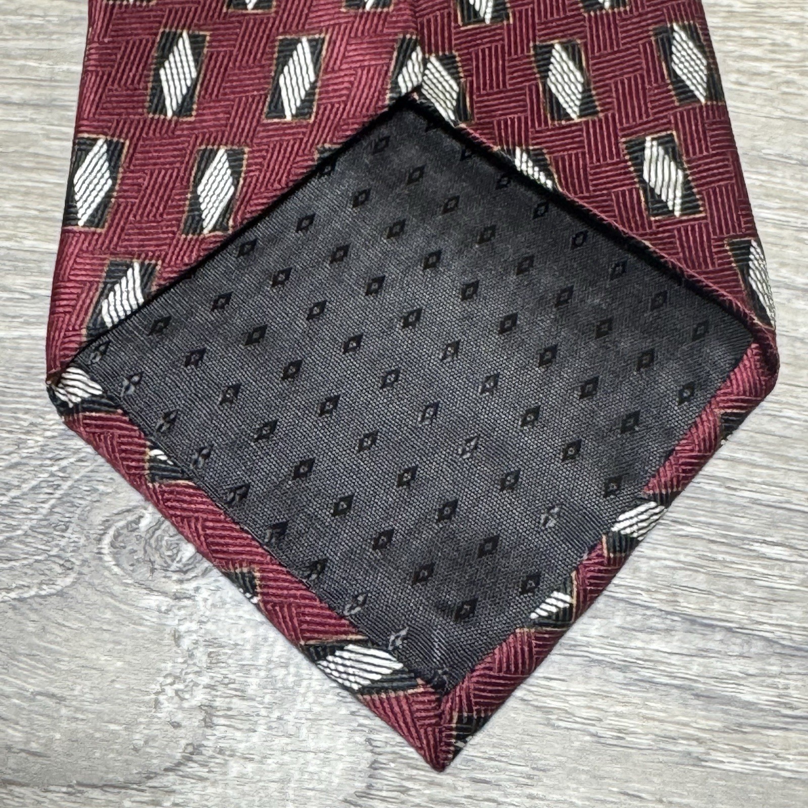 Yves Saint Laurent Men's Designer Tie Navy White Geometric 100% Silk Handmade