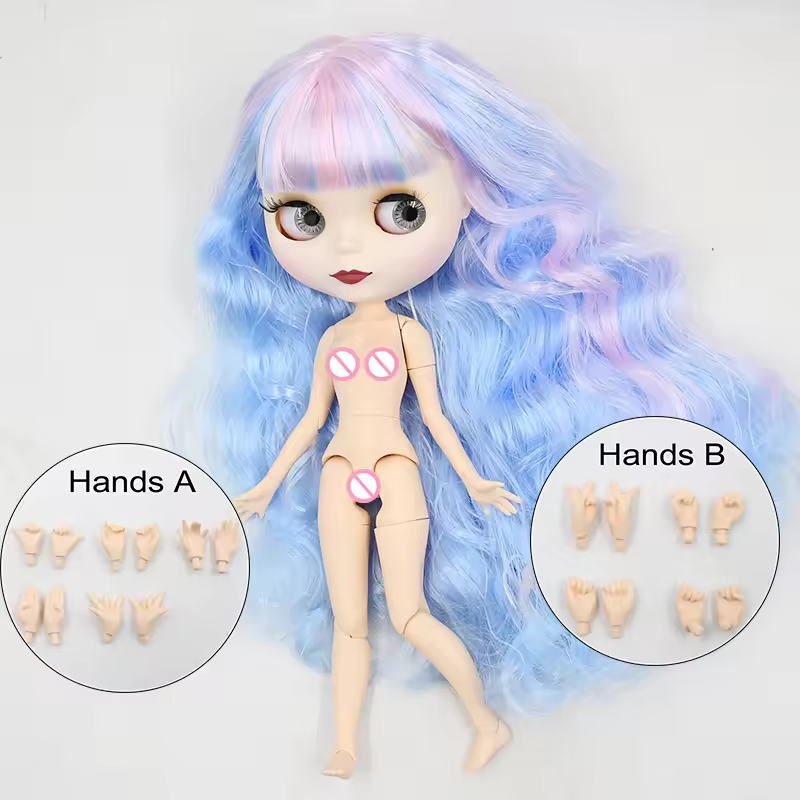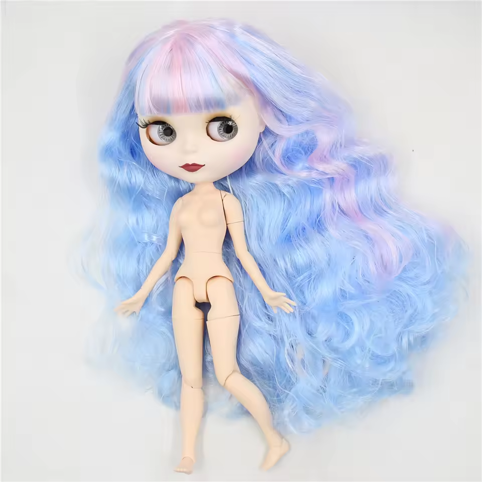 Neo Blythe Doll Matte Face Pink Blue Hair Nude White Skin Collectible Puppet Toy There are just Limited quantity available! Get yours NOW before we run out!!! Step into a world of creativity and magic with our stunning 12-inch Blythe doll! Perfect for collectors and doll enthusiasts, this Blythe doll is ready to captivate hearts with her unique charm and endless possibilities for customization. Features: ✨ Expressive Eyes: Four different eye colors and positions with a simple pull of a string, reflecting her many moods and styles. 👗 Customizable Beauty: Change her hair, makeup, and style to create a doll that’s uniquely yours. 🌈 Premium Quality: Crafted from durable, high-quality materials to ensure she stands the test of time. 📏 Perfect Size: At 12 inches tall, she's the ideal size for both play and display. Why You'll Love Our 12" Blythe Doll: Endless Creativity: Perfect for photography, crafting, and artistic projects, she’s a blank canvas for your imagination. Community Connection: Join a worldwide network of Blythe enthusiasts who share your passion and creativity. Unique Gift Idea: A thoughtful and personalized gift for birthdays, holidays, or any special occasion, sure to delight both children and adults. Bring home the magic of the 12" Blythe doll today and dive into a world where imagination knows no bounds. Embrace the charm, creativity, and joy that only a Blythe doll can offer. Order now and let the adventures begin! Dolls are selling in nude, Not including clothes and accessories!