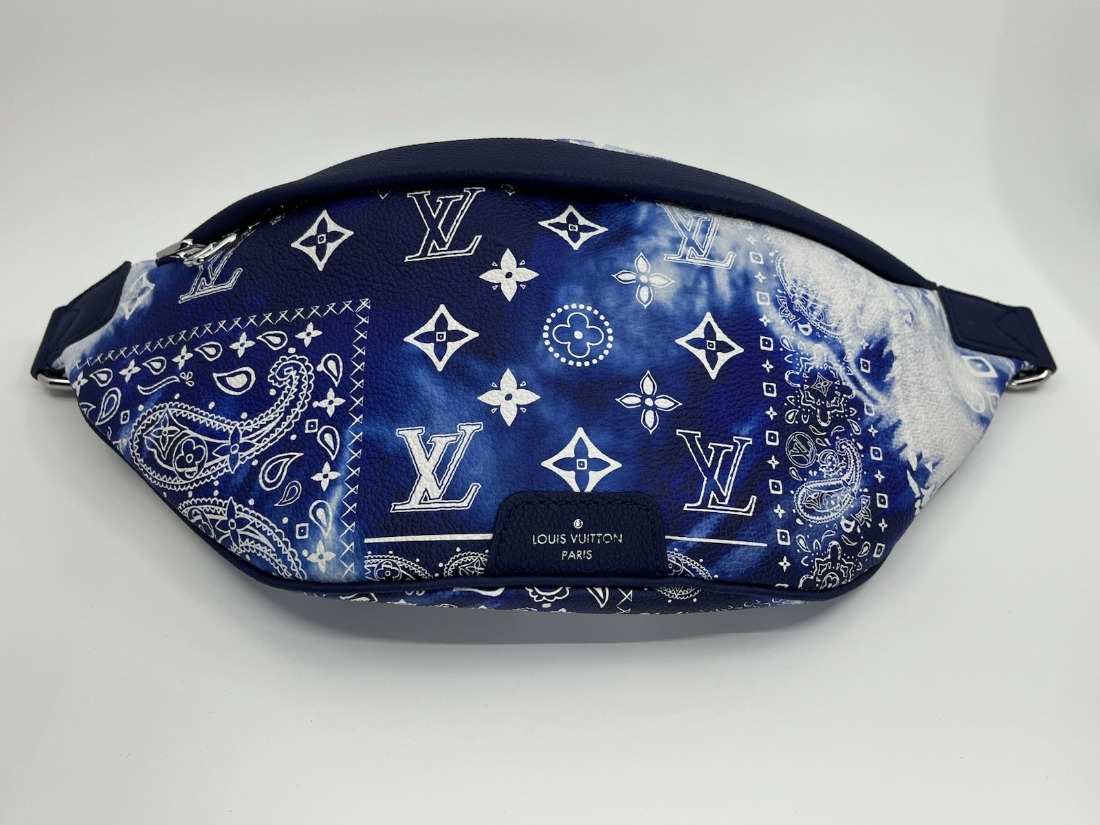 New Authentic Louis Vuitton Monogram Bandana Discovery Bum Bag M20587 Crossbody At Luxuria & Co. you can find an impressive display of authentic new & pre-owned Louis Vuitton items from the Maison's current & former collections. @Luxuria.Co@luxuriaco_Ask us anything Crafted from Monogram Bandana canvas, the Discovery bumbag offers the ideal mix of casual chic and modern functionality. With a body-friendly shape and adjustable belt, it can be worn around the waist, over the shoulder or slung stylishly across the chest. Zipped pockets, front and back, provide easy access to phone, cards and keys. 16 x 5.9 x 3.5 inches (Length x Height x Width) * Monogram Bandana coated canvas * Cowhide leather trim * Textile lining * Silver-color hardware * Zip closure system * Adjustable belt * Outside front pocket * Outside back flat pocket * Strap:Not removable, adjustable * Strap drop:10.2 inches * Strap drop max:16.5 inches * Made in Spain