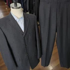 Size: 42r USA with 25 -inch arm length and a jacket length of 30.5 inches. Pants: 32x30 For complete measurements, see photos #2 and #3 To see exactly how we measured, see the last series of photos. Extra fabric for adjustments: Waist: 3 inches Inseam: 1.5 inches Arms: 1 inch Color and fabric: charcoal gray flannel like Condition: vintage new with tags. No flaws were found Made in Italy, light shoulder pads, single vent, light to medium weight fabric, flat front, uncuffed Return policy: We offer free shipping and no returns. We can not afford to offer both in the highest return category on eBay. It becomes very expensive to mail out items for free for people to try on if they are not confident in checking the measurements in picture #2. If you prefer to have the ability to return the item and pay $12.95 shipping, please send us a message, and we can change the listing format to offer returns. The $12.95 shipping cost would break us out even in the case you needed to return the item. You must contact us before purchasing as some of our items are on consignment and we will need to get the owners approval before proceeding. We ship the next business day after the payment is made. A discounted, expedited shipping option is available at checkout. If you need help figuring out how to buy a blazer or suit on ebay that actually fits you properly. There are some fantastic videos on You tub e