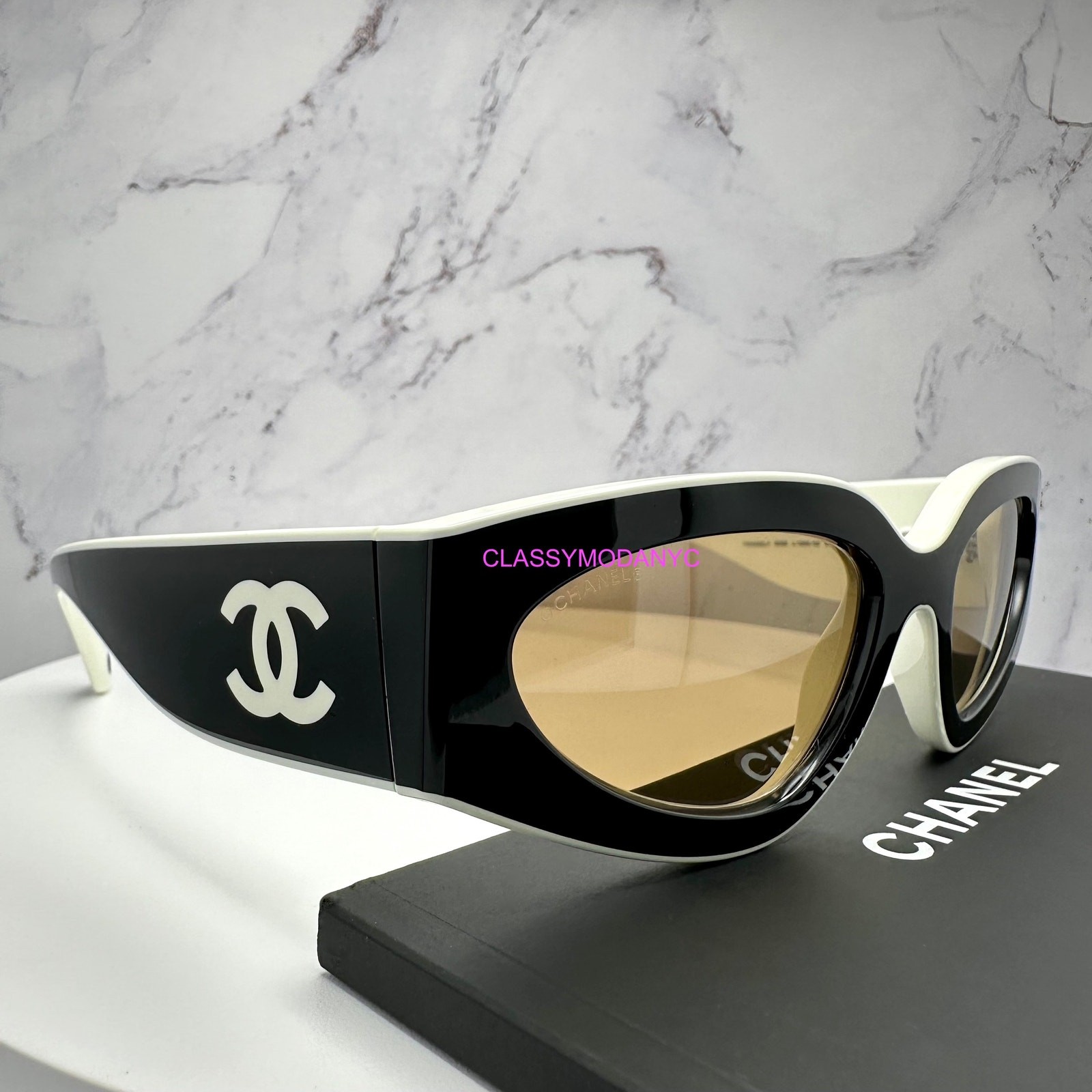CHANEL New Sunglasses - 100% Authentic! CURRENT COLLECTION CHANEL - SUPER LIMITED - SOLD OUT! Brand: CHANEL Sale Includes: Chanel Case, Chanel Box, Chanel Care Material, Chanel Polish Cloth Condition: Brand New CHANEL Sunglasses - 100% Authentic! Item Details * Black & White Acetate Frame * Black Arms with White Interlocking CC Logo On Both Sides * Cat Eye Silhouette Frame Shape * CHANEL Logo engraved on lenses * Gradient Brown Lens * Black Interlocking CC Logo engraved on interior ends of the temple arms * CHANEL logo on metal part of interior arms at temples * Made In Italy * Unisex Eyewear * Unique Serial Number etched to confirm authenticity * Manufacturer Color: Black / White * Measurements: Temple (in mm): Lens/ Bridge/Temple 54-20-140 AUTHENTICITY GUARANTEED 100% ORIGINAL and BRAND NEW Fast Shipping - Shop Now Discounted Luxury Designer Items - Great Gift! 597