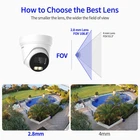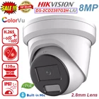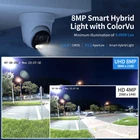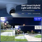 Product Description 8 MP Smart Hybrid Light with ColorVu Fixed Turret Network Camera High quality imaging with 8 MP resolution Smart Hybrid Light: advanced technology with long range Clear imaging against strong back light due to 130 dB WDR technology Efficient H.265+ compression technology Focus on human and vehicle classification based on deep learning -U: Built-in microphone for real-time audio security Water and dust resistant (IP67) Camera Image Sensor 1/1.8" Progressive Scan CMOS Max. Resolution 3840 × 2160 Min. Illumination Color: 0.0008 Lux @ (F1.0, AGC ON),0 Lux with light Shutter Time 1/3 s to 1/100,000 s Day & Night IR cut filter Angle Adjustment Pan: 0° to 360°,tilt: 0° to 75°,rotate: 0° to 360° Lens Lens Type Fixed focal lens, 2.8 and 4 mm optional Focal Length & FOV 2.8 mm, horizontal FOV 108.8°, vertical FOV 56.4°, diagonal FOV 134.3° 4 mm, horizontal FOV 93.3°, vertical FOV 47.2°, diagonal FOV 114.2° Lens Mount M16 Iris Type Fixed Aperture F1.0 Depth Of Field 2.8 mm: 3.3 m to ∞ 4 mm: 3.8 m to ∞ DORI DORI 2.8 mm: D: 89 m, O: 35 m, R: 17 m, I: 8 m 4 mm: D: 109 m, O: 43 m, R: 21 m, I: 10 m Illuminator Supplement Light Type IR,White Light Supplement Light Range Up to 40 m Smart Supplement Light Yes IR Wavelength 850 nm Video Main Stream 50 Hz: 25 fps (3840 × 2160, 3200 × 1800, 2688 × 1520, 1920 × 1080, 1280 × 720) 60 Hz: 24 fps (3840 × 2160) 30 fps (3200 × 1800, 2688 × 1520, 1920 × 1080, 1280 × 720) Sub-Stream 50 Hz: 25 fps (1280 × 720, 640 × 480, 640 × 360) 60 Hz: 30 fps (1280 × 720, 640 × 480, 640 × 360) Third Stream 50 Hz: 10 fps (1920 × 1080, 1280 × 720, 640 × 480, 640 × 360) 60 Hz: 10 fps (1920 × 1080, 1280 × 720, 640 × 480, 640 × 360) *Third stream is supported under certain settings. Video Compression Main stream: H.265/H.264/H.264+/H.265+, Sub-stream: H.265/H.264/MJPEG, Third stream: H.265/H.264, *Third stream is supported under certain settings. Video Bit Rate 32 Kbps to 16 Mbps H.264 Type Baseline Profile,Main Profile,High Profile H.265 Type Main Profile Bit Rate Control CBR,VBR Scalable Video Coding (SVC) H.264 and H.265 encoding Region Of Interest (ROI) 1 fixed region for main stream and sub-stream Audio Audio Compression -U: G.711/G.722.1/G.726/MP2L2/PCM/MP3/AAC-LC Audio Bit Rate -U: 64 Kbps (G.711ulaw/G.711alaw)/16 Kbps (G.722.1)/16 Kbps (G.726)/16 Kbps to 64 Kbps (AAC-LC)/32 to 192 Kbps (MP2L2)/8 to 320 Kbps (MP3) Audio Sampling Rate -U: 8 kHz/16 kHz/32 kHz/44.1 kHz/48 kHz Environment Noise Filtering -U: Yes Network Protocols TCP/IP, ICMP, HTTP, HTTPS, FTP, DHCP, DNS, DDNS, RTP, RTSP, RTCP, NTP, UPnP, SMTP, IGMP, 802.1X, QoS, IPv4, IPv6, UDP, Bonjour, SSL/TLS, PPPoE, SNMP, WebSocket, WebSockets, SRTP, SFTP Simultaneous Live View Up to 6 channels API Open Network Video Interface (Profile S, Profile G, Profile T),ISAPI,SDK,ISUP User/Host Up to 32 users 3 user levels: administrator, operator, and user Security Password protection, complicated password, HTTPS encryption, 802.1X authentication (EAP-TLS, EAP-LEAP, EAP-MD5), watermark, IP address filter, basic and digest authentication for HTTP/HTTPS, WSSE and digest authentication for Open Network Video Interface, RTP/RTSP over HTTPS, control timeout settings, security audit log, TLS 1.1/1.2/1.3, host authentication (MAC address) Network Storage NAS (NFS, SMB/CIFS),Auto Network Replenishment (ANR) Client iVMS-4200,Hik-Connect,Hik-Central Web Browser Plug-in required live view: IE 10, IE 11, Plug-in free live view: Chrome 57.0+, Firefox 52.0+, Edge 89+, Local service: Chrome 57.0+, Firefox 52.0+, Edge 89+ Image Image Parameters Switch Yes Image Settings Rotate mode,saturation,brightness,contrast,sharpness,gain,white balance,adjustable by client software or web browser Day/Night Switch Day,Night,Auto,Schedule Image Enhancement BLC,HLC,3D DNR SNR ≥ 52 dB Wide Dynamic Range (WDR) 130 dB Privacy Mask 4 programmable polygon privacy masks Interface Ethernet Interface 1 RJ45 10 M/100 M self-adaptive Ethernet port On-Board Storage Built-in memory card slot, support microSD/microSDHC/microSDXC card, up to 512 GB Built-In Microphone -U: Yes Reset Key Yes Event Basic Event Motion detection (support alarm triggering by specified target types (human and vehicle)),video tampering alarm,exception Linkage Upload to FTP/NAS/memory card,notify surveillance center,trigger recording,trigger capture,send email Smart Event Line crossing detection, intrusion detection, region entrance detection, region exiting detection (support alarm triggered by specified target types (human and vehicle)), scene change detection Deep Learning Function Face Capture Yes Perimeter Protection Line crossing, intrusion, region entrance, region exiting Support alarm triggering by specified target types (human and vehicle) General Power 12 VDC ± 25%, 0.54 A, max. 6.5 W,Ø5.5 mm coaxial power plug,reverse polarity protection, PoE: IEEE 802.3af, Class 3, max. 8 W Material Cover: Metal, main body: Metal Dimension Ø138.3 mm × 115.4 mm (Ø5.4" × 4.5") Package Dimension 170 mm × 170 mm × 160 mm (6.7" × 6.7" × 6.3") Weight Approx. 770 g (1.7 lb.) With Package Weight Approx. 1040 g (2.3 lb.) Storage Conditions -30 °C to 60 °C (-22 °F to 140 °F). Humidity 95% or less (non-condensing) Startup And Operating Conditions -30 °C to 60 °C (-22 °F to 140 °F). Humidity 95% or less (non-condensing) General Function Heartbeat,mirror,password reset via email,pixel counter,anti-banding Language 33 languages: English, Russian, Estonian, Bulgarian, Hungarian, Greek, German, Italian, Czech, Slovak, French, Polish, Dutch, Portuguese, Spanish, Romanian, Danish, Swedish, Norwegian, Finnish, Croatian, Slovenian, Serbian, Turkish, Korean, Traditional Chinese, Thai, Vietnamese, Japanese, Latvian, Lithuanian, Portuguese (Brazil), Ukrainian Approval EMC CE-EMC: EN 55032: 2015, EN 61000-3-2:2019, EN 61000-3-3: 2013+A1:2019, EN 50130-4: 2011 +A1: 2014, RCM: AS/NZS CISPR 32: 2015, IC: ICES-003: Issue 7, KC: KN32: 2015, KN35: 2015 Safety UL: